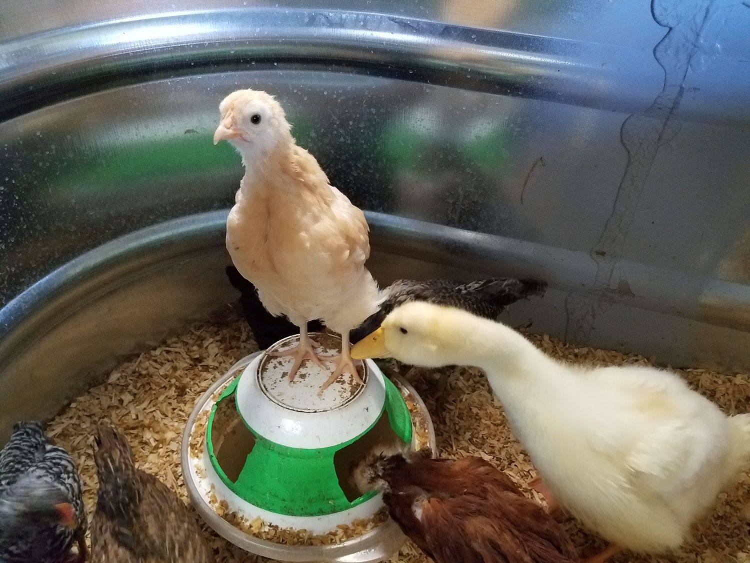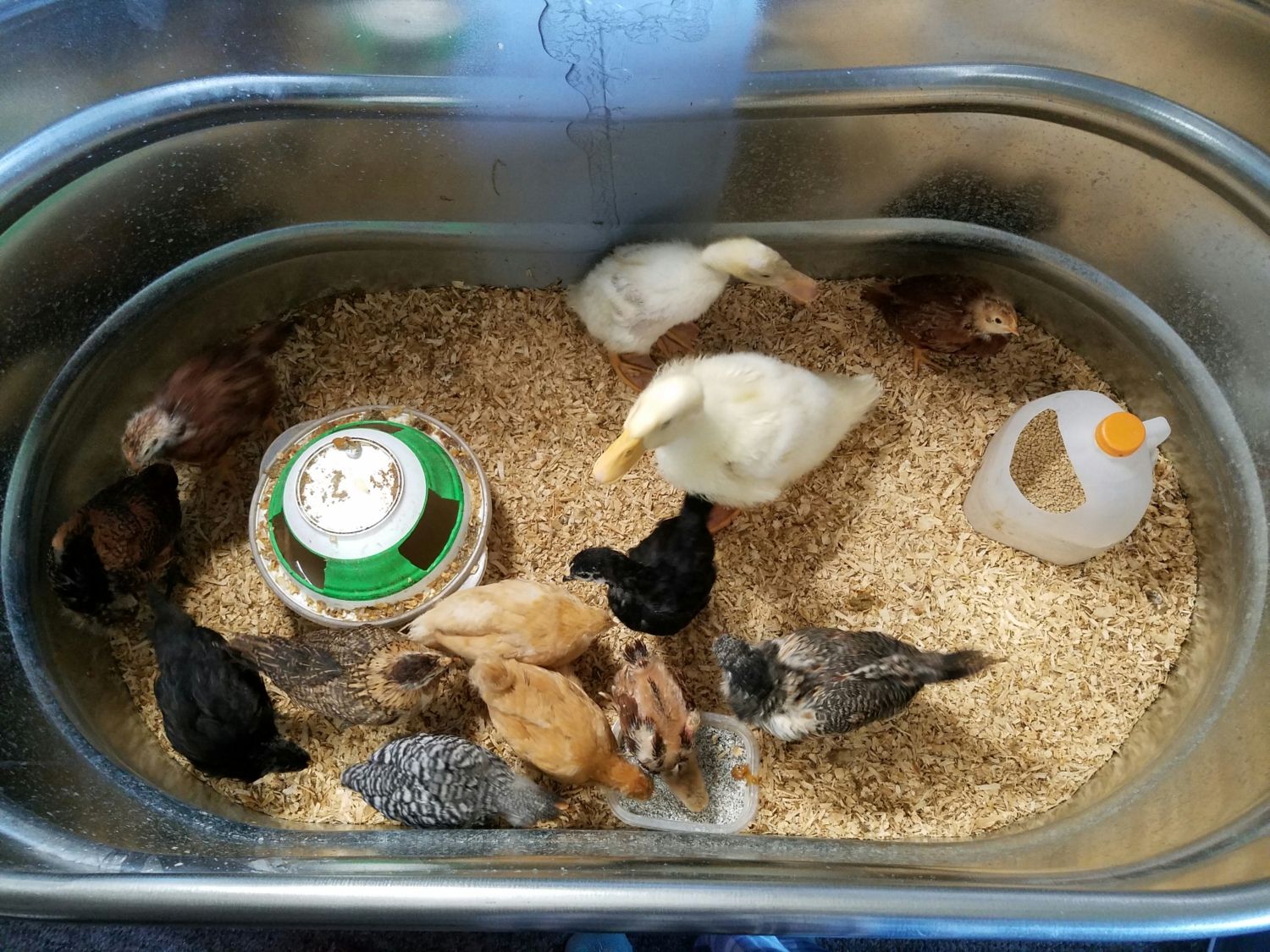 Chick and duckling update: Below is how the brooder looked on Saturday before we put them outside. We had to put them out because all the dust they kicked up started getting my asthma going pretty bad.