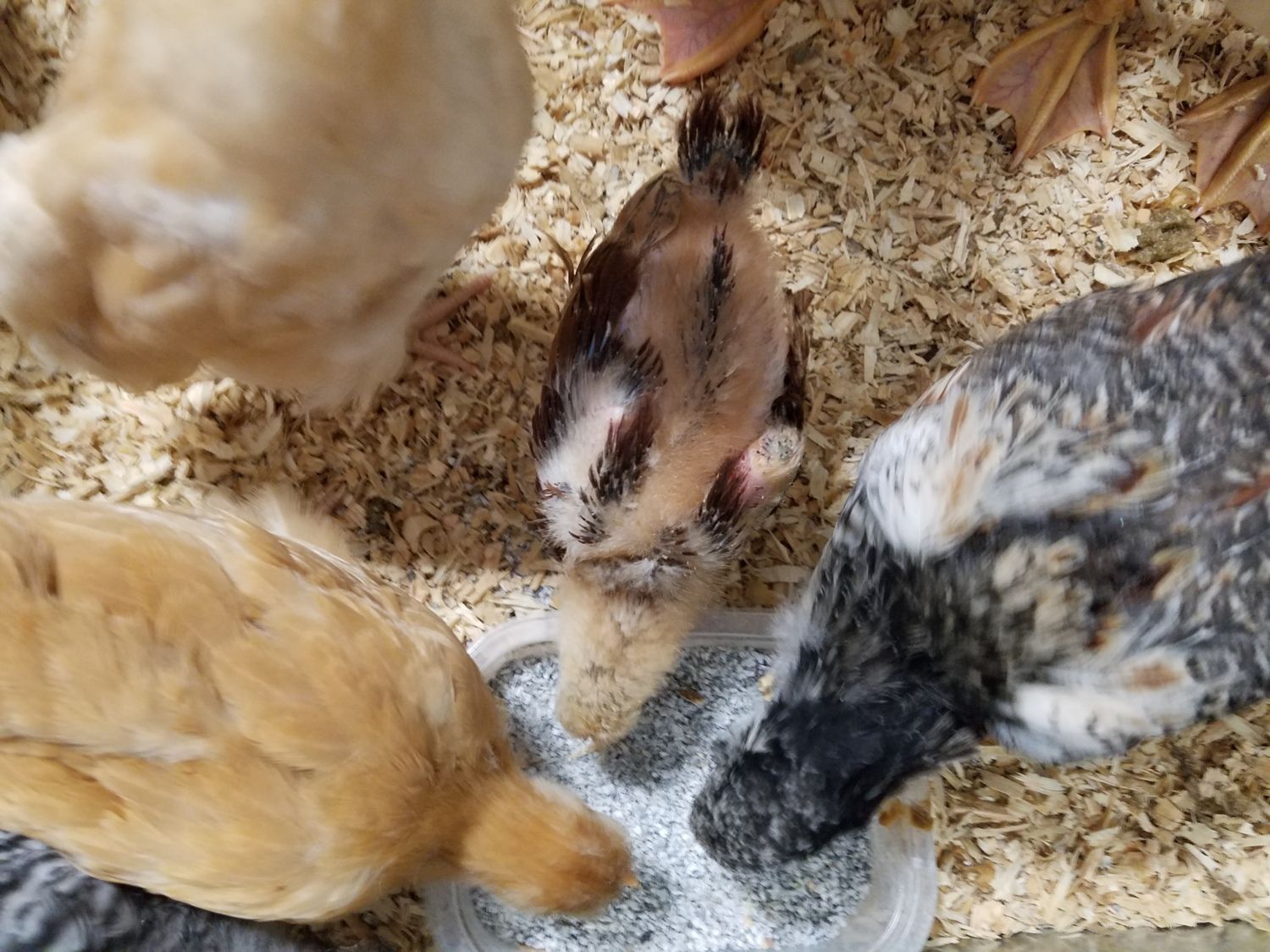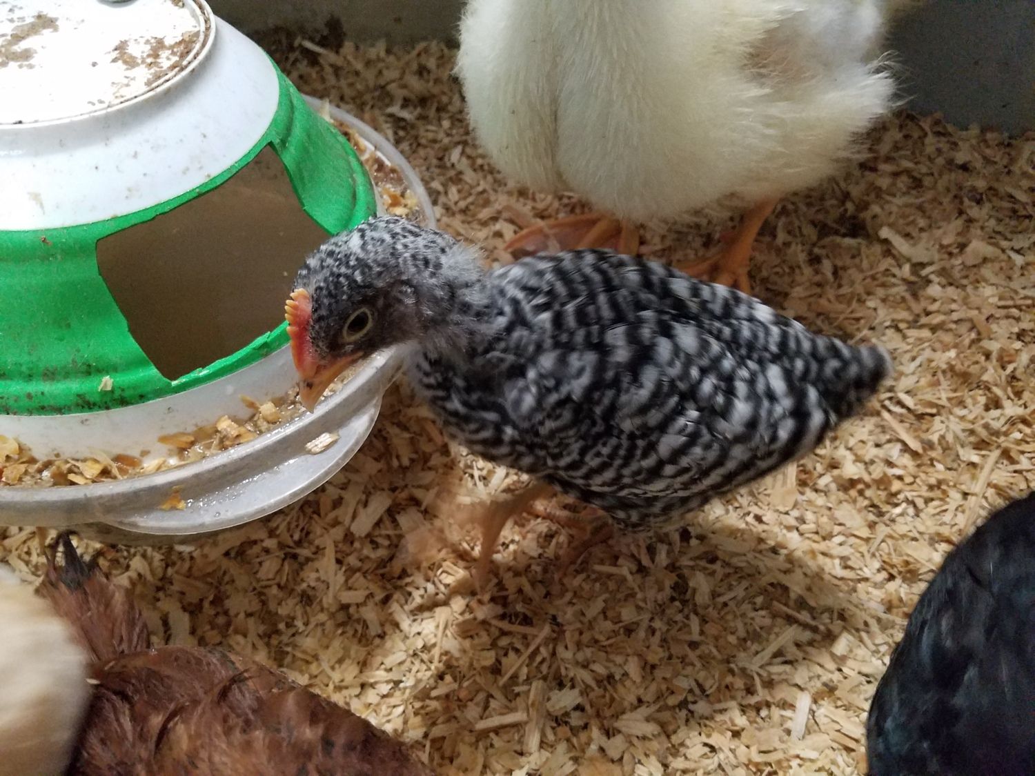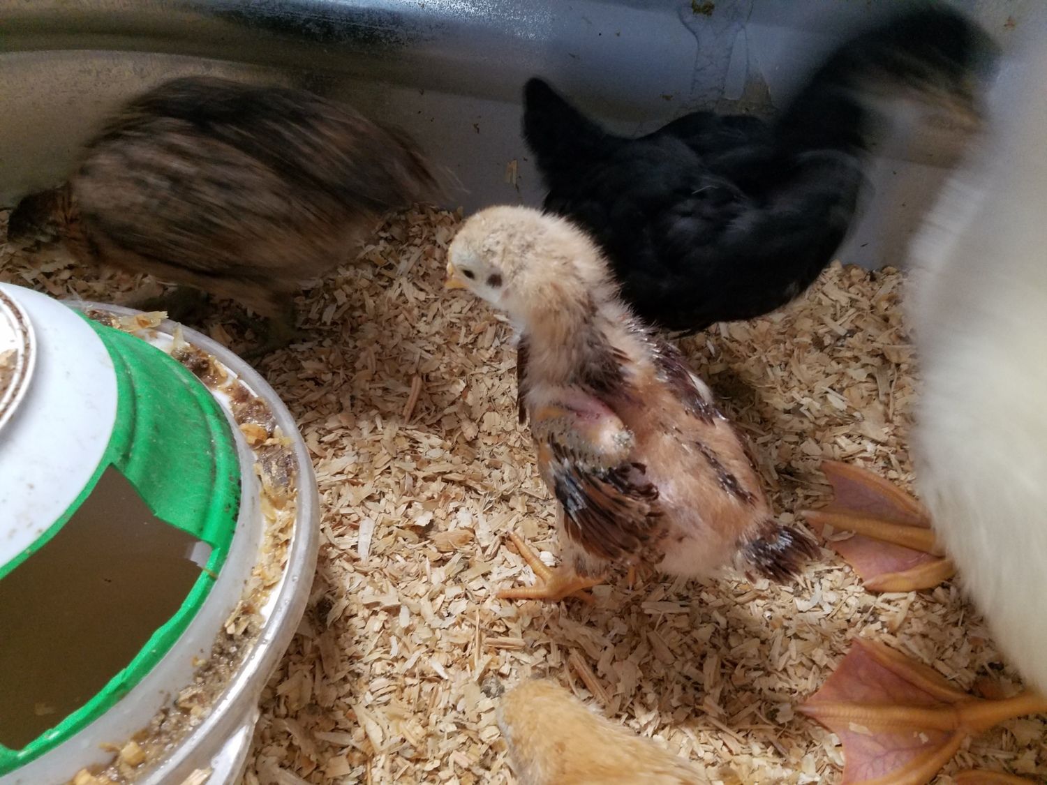 Broken wing chick finally getting his feathers. He's pretty late in development compared to the others.