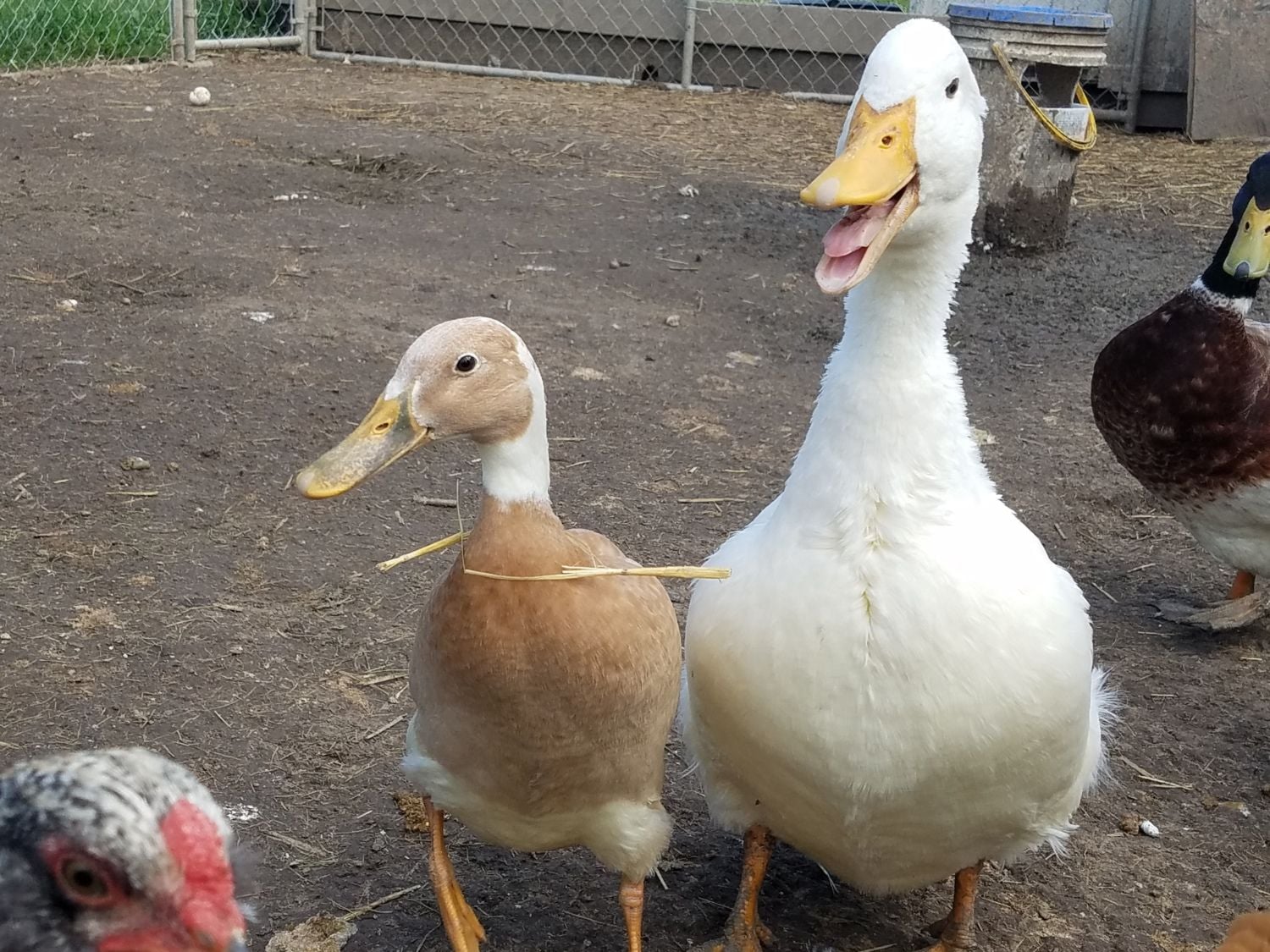 Awwwwww! And she's hanging with her BFF! So cute! Look how huge that pekin is! your f/w gives me hope... My Phoebe is looking a little awkward as she goes through her teen years... ;) your girl is SO pretty! I'm not kidding, her face is pretty! XD