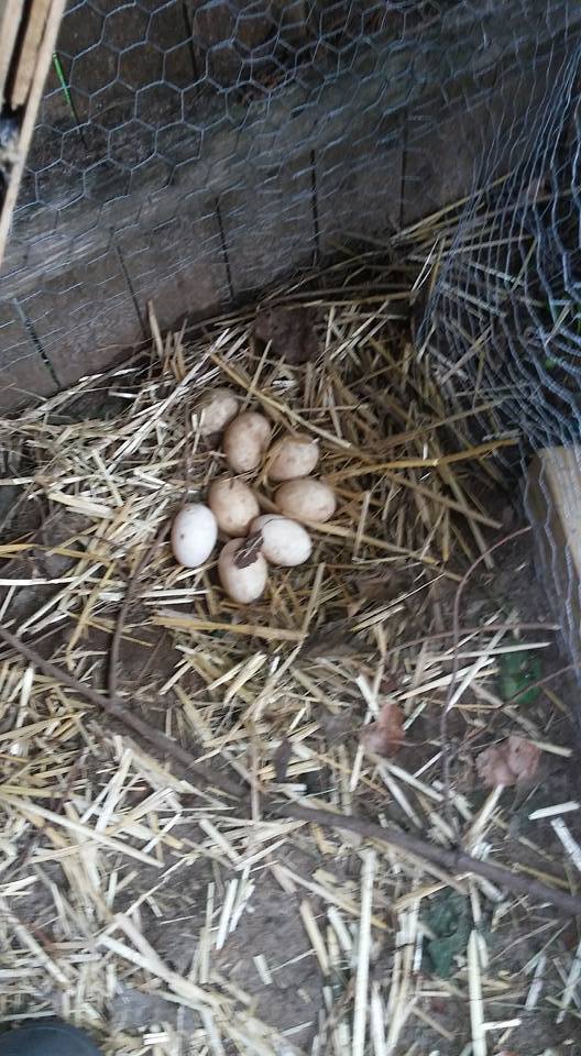 Eight eggs in eight days. My beautiful crested mali dug a shallow round hole in the corner of the duck run and has laid eggs for 8 days in a row, with the help of her Rouen Drake. Will start candling them tomorrow to check fertilization status. Will post updates. These are my first eggs
