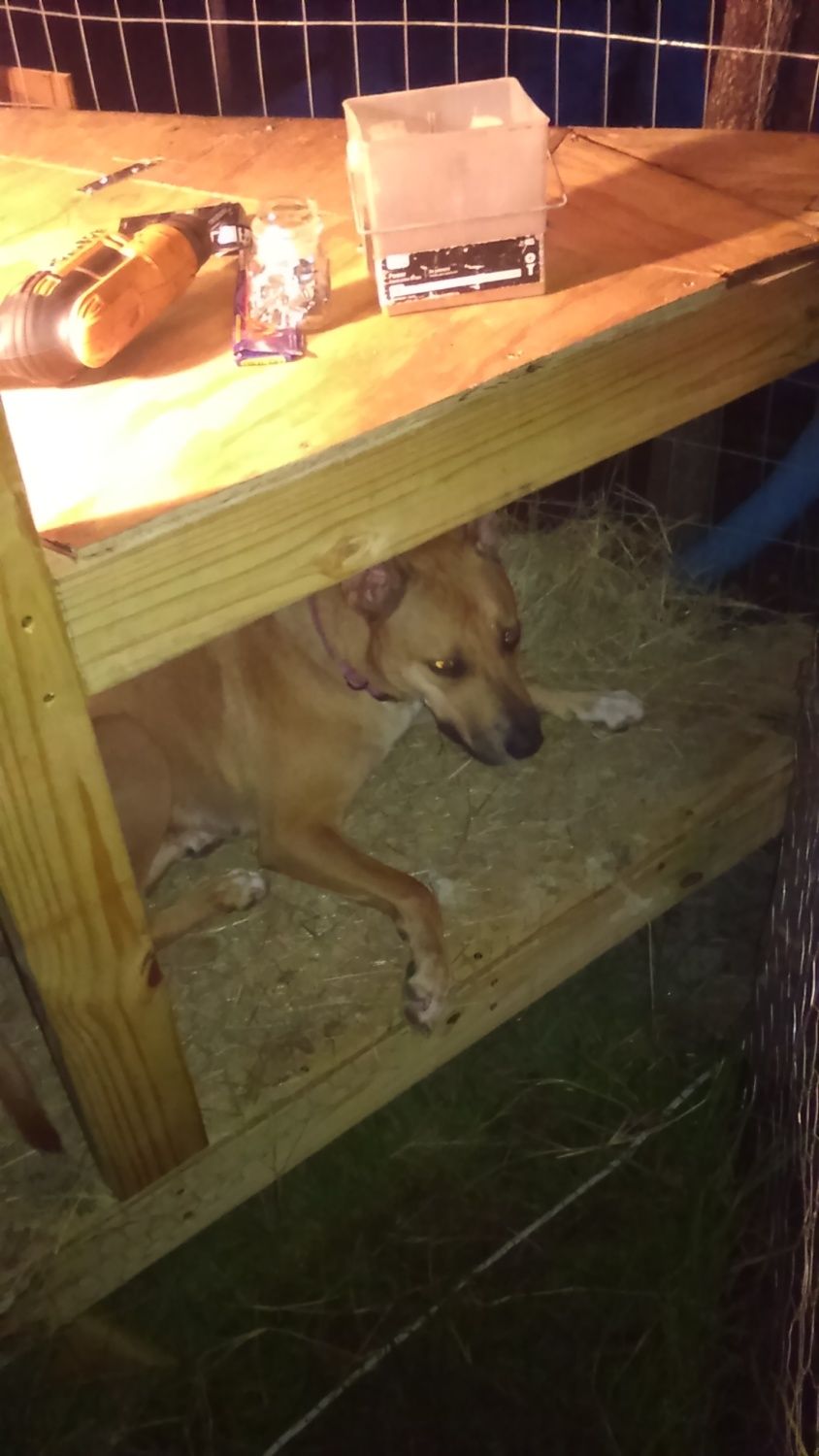 Huey and Dewy our muskys love the top the most.. thinking bout opening up a syn roof covered slash top deck for them with roosting limbs.