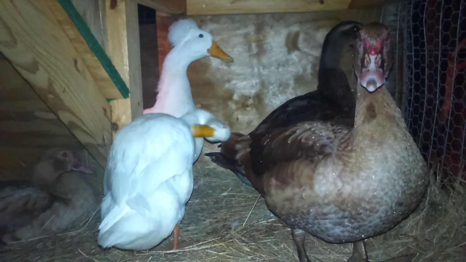 Thanks and it started out as being storage and it went from there. Cedars laying where the storage was gonna be. But I used it all and my storage is on the end. I'm thinking bout putting a hole in the top and have a separate area on top just for my Scovys at night. They seem to be getting more aggressive with all the others. Huey and Dewy are my biggest supporters...lol They are way more personal than the others but I still hold em all as much as possible. Huey will let me hold him most the time with not much trouble. My Rouens are fillingg in great. Donald has his curls and his white ring is starting. Dewy is getting very pecky with all the others and who else has a double header? Lol. Got me some loving from Luey Luey...Hes so clumsy...Bless his heart. He has the most trouble getting up the ramp at bedtime. I love watching the Svovys grooming and showing off. Dewy is flying on a regular basis but only of a morning in and out of the pond and showing off and acting like she's asking the others " did yall see me did yall see me???" Wagging her tail and making so many new awesome sounds. They are so amazing and I'm learning more and more everyday. And I swear they change hourly. I see new things everytime I look at them. Rambling again...Thanks yall.