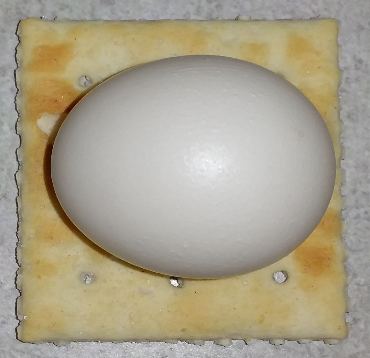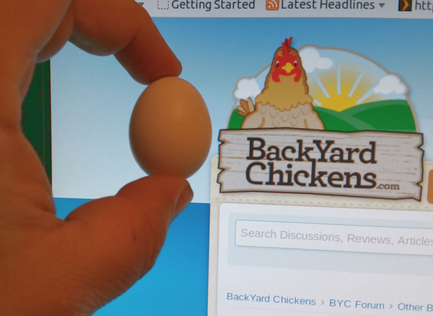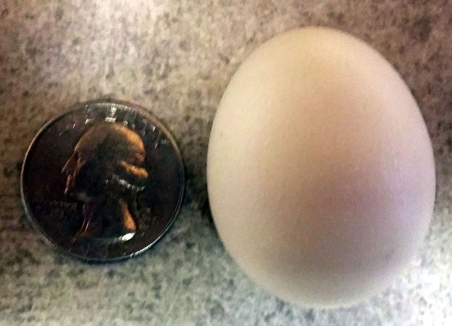 Tevye eats a lot of the free choice oyster shell (goofball) and occasionally I've found him sitting in a nesting box. I've found two eggs like this (20g) and attributed them to him.