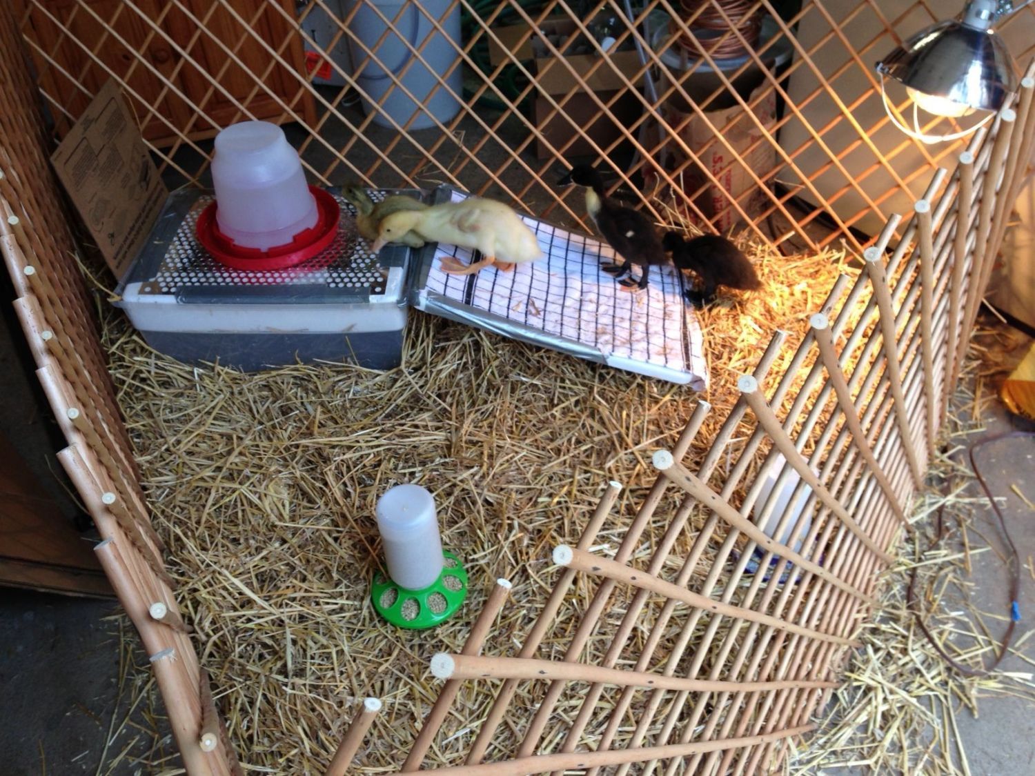 I will have to try that. I have noticed as my little ducklings rapidly grow the chicken waterer is just not cutting it. I couldn't think of a way to keep them out of the water though until I saw your pic. Thanks for the great idea.