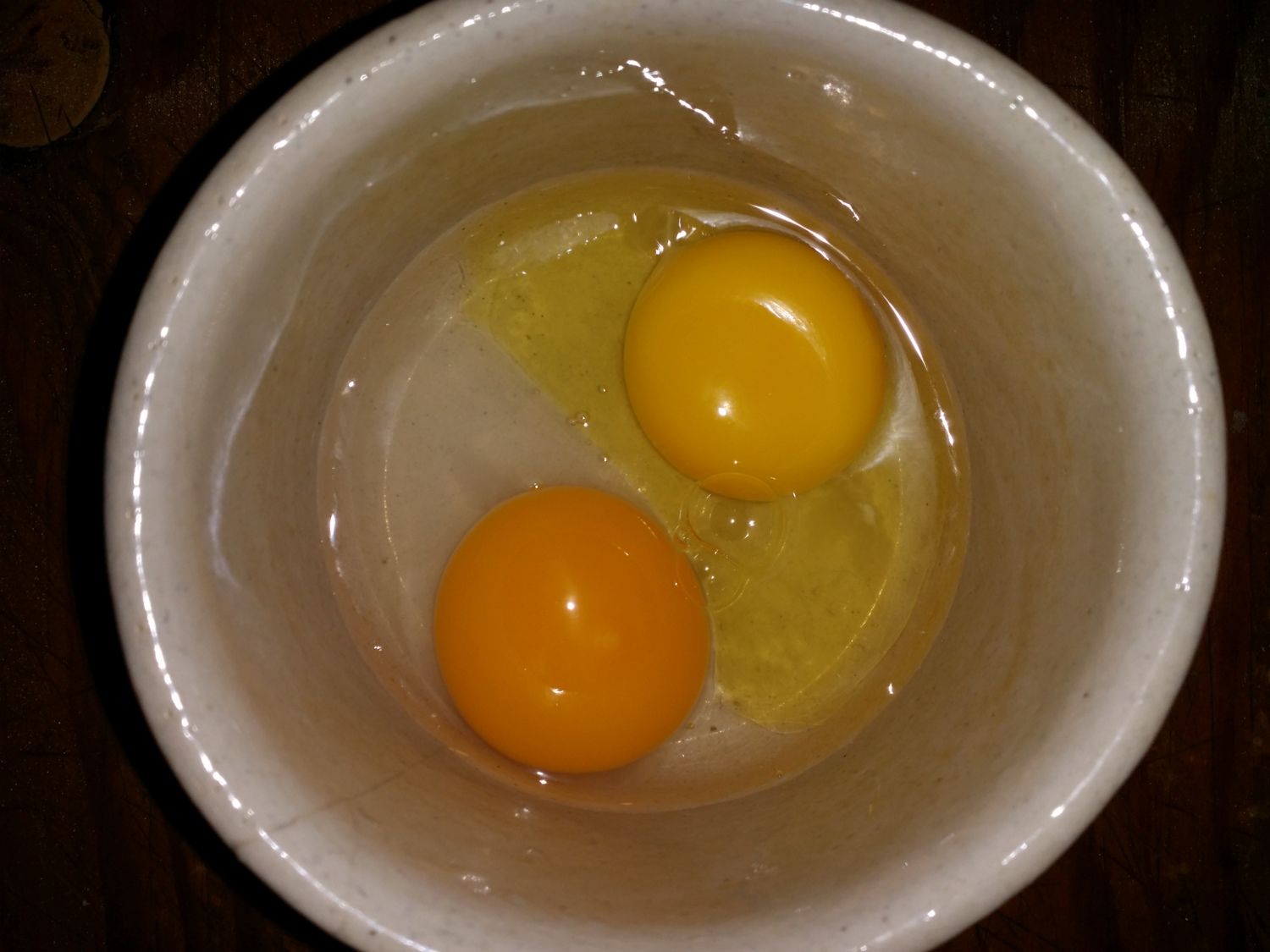 Here is the difference between a chicken egg, & a duck egg. our duck egg yolk is much richer in color.