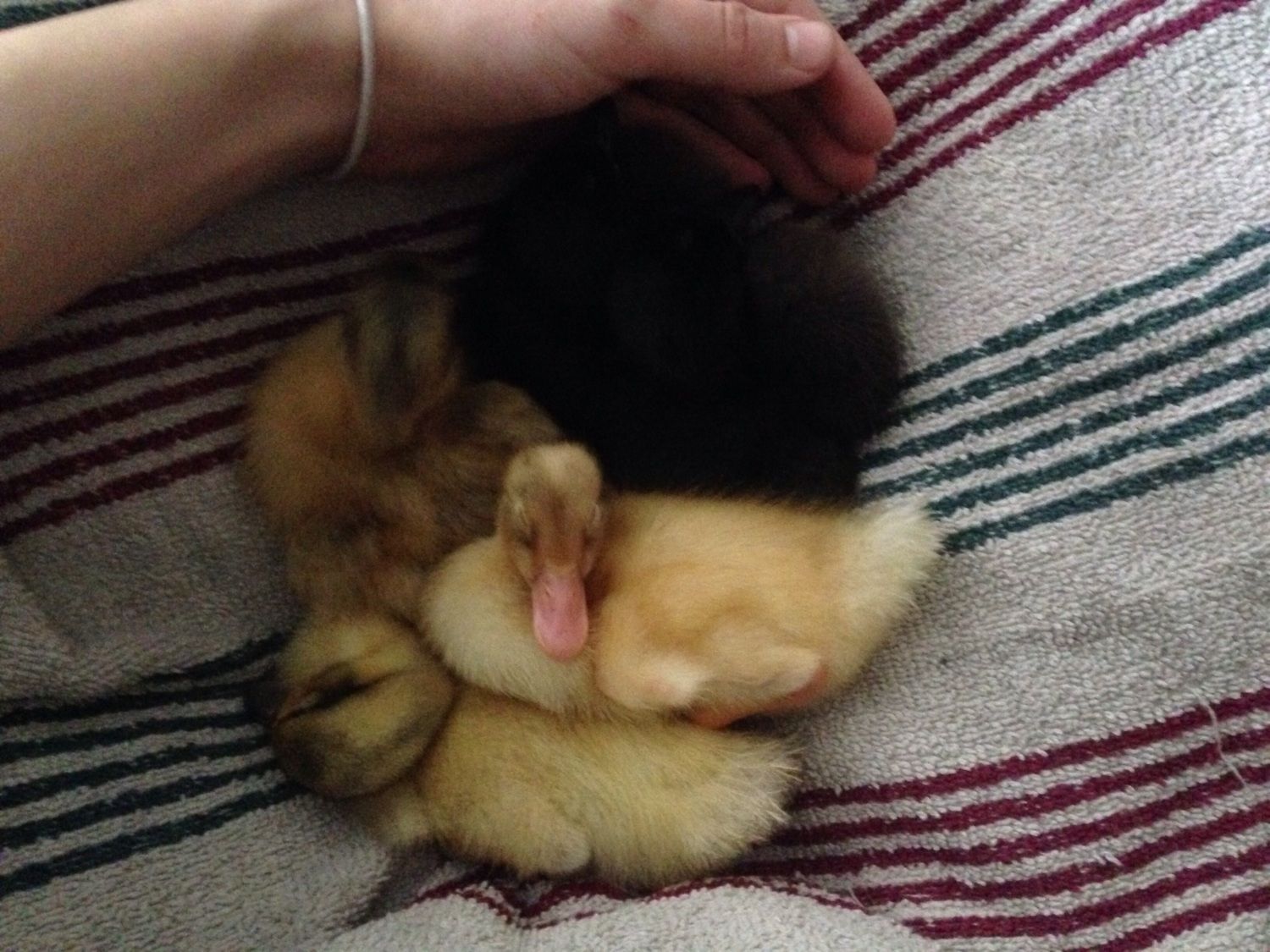 I used my iPhone with a LifeProof case. I wanted to catch them when they torpedoed under the water, but of course they stopped doing that as soon as I submerged my phone. Maybe next time ;] Here they are falling asleep in my lap, with a warm heating blanket underneath them.