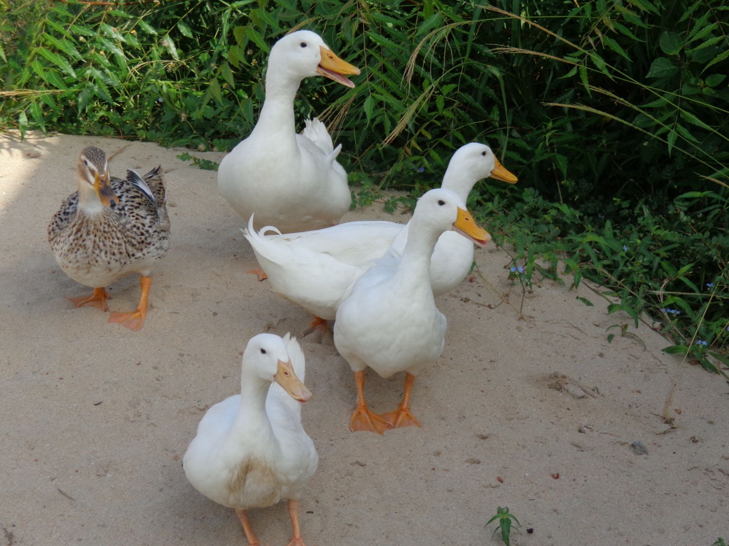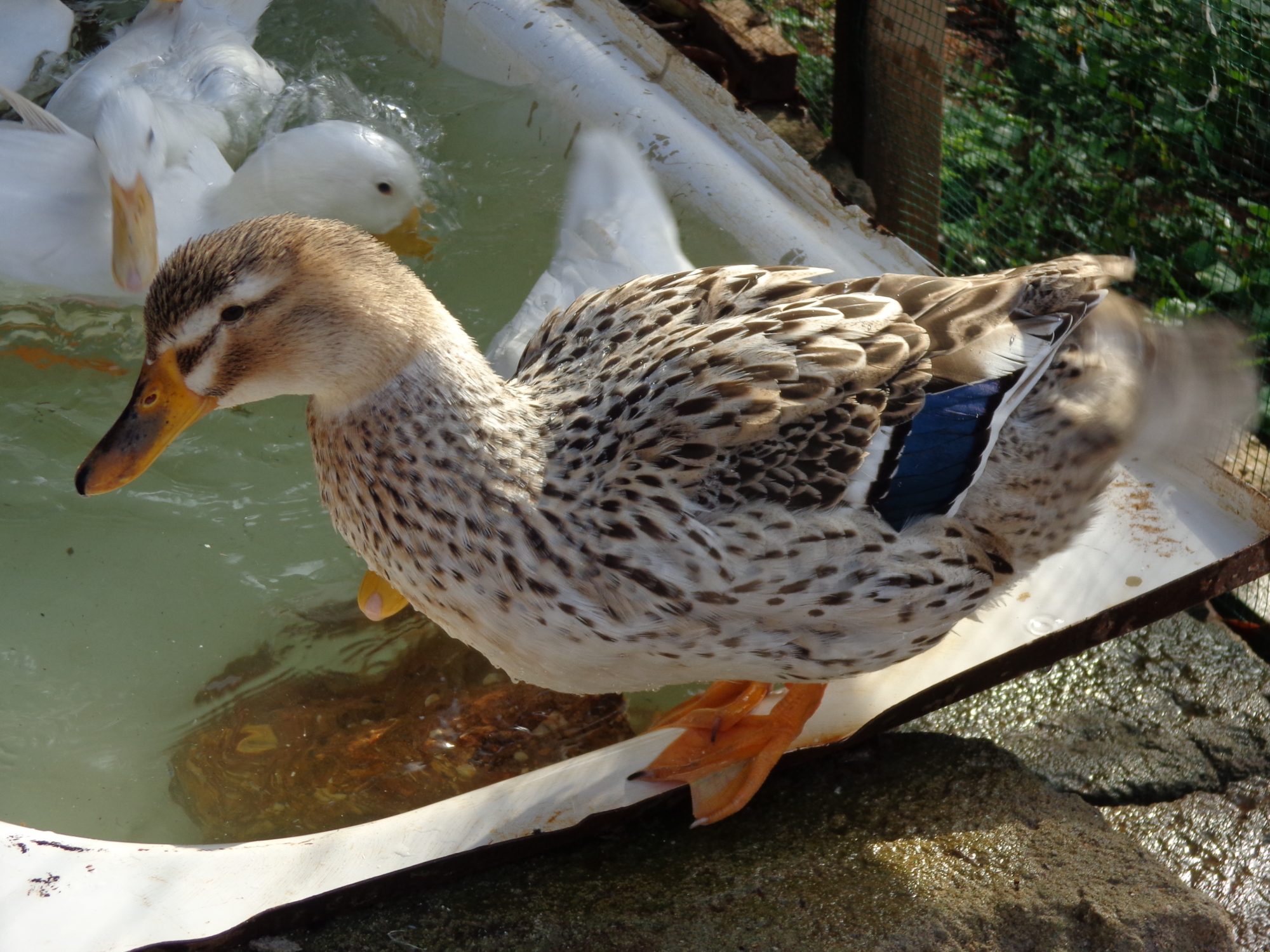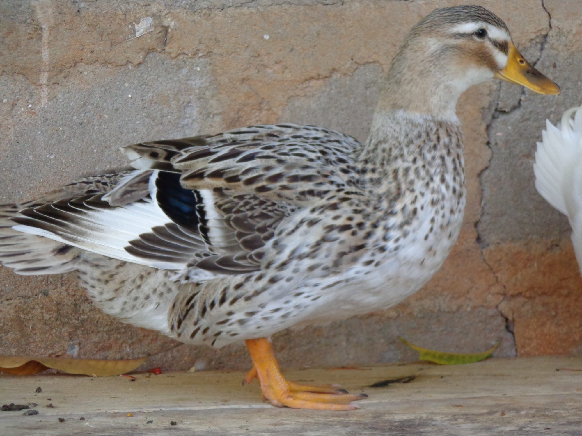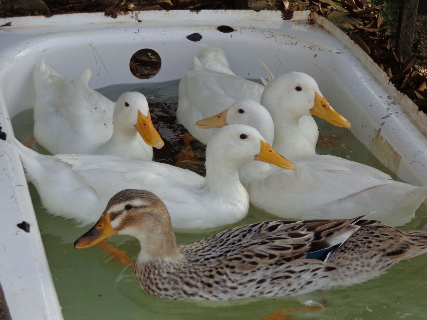 She is a beauty. I am also guessing Silver Appleyard (possibly a mix) but if that is the case she is a seriously scarce bird. As of just a few years ago the census of domestic waterfowl in North America listed only 128 breeding pairs. I can't imagine why so few since they are (both male and female) really beautiful.I'm having an identity crisis with one of my ducks. I bought five matured ducks few days ago from someone who could not say what they are. Four of them (the white ones) I think are Pekin? However there is one duck I can't really tell the breed. Here are some pictures I took this morning in their new home.