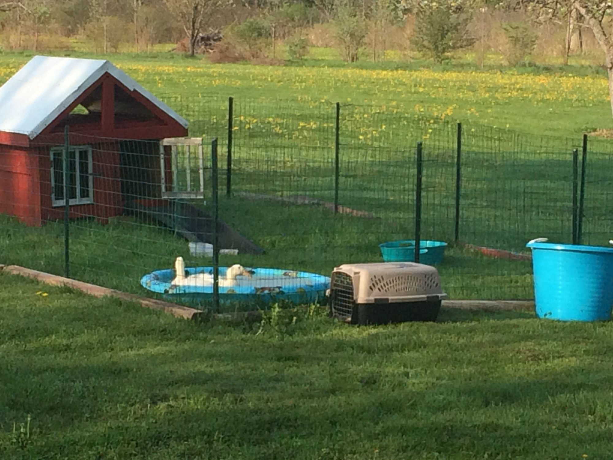 It's 63 out already so I went ahead and put them out for the day. They seem to approve as my non-swimmer decided to jump right in the pool! They have tons of water tubs out as it's supposed to reach low 80s today. Hubby will come home and check on them at noon. Wish us luck!