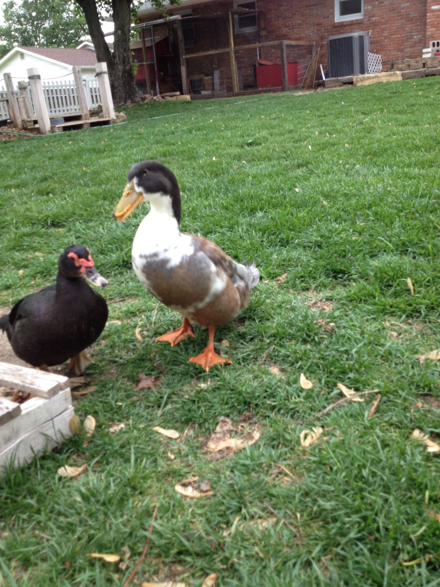 He's so cute, but a complete lunatic. He's my neighbor's and sort of a rescue. He has a freakish mating drive. Like a switch flipped overnight! The only thing he hasn't mounted is the chickens and rooster. Thank the Dear Lord his self preservation seems to have won out on that decision. He's being separated again. No one can pull the trigger because he was the court jester for a while and made us all laugh. I think they hope he'll snap out of it. Any way that might happen? Obviously, they have a female muscovy who's sitting eggs, a pair of pekins that are around 14wks and a pair of rouens that are around 12wks. He's had it out for the pekin male since it arrived, attacking it with what looks like intent to kill, not just dominate, but they've always been separated. The recent intergration didn't go well.... It was rape and pillage palooza. Not easy to watch.![]()