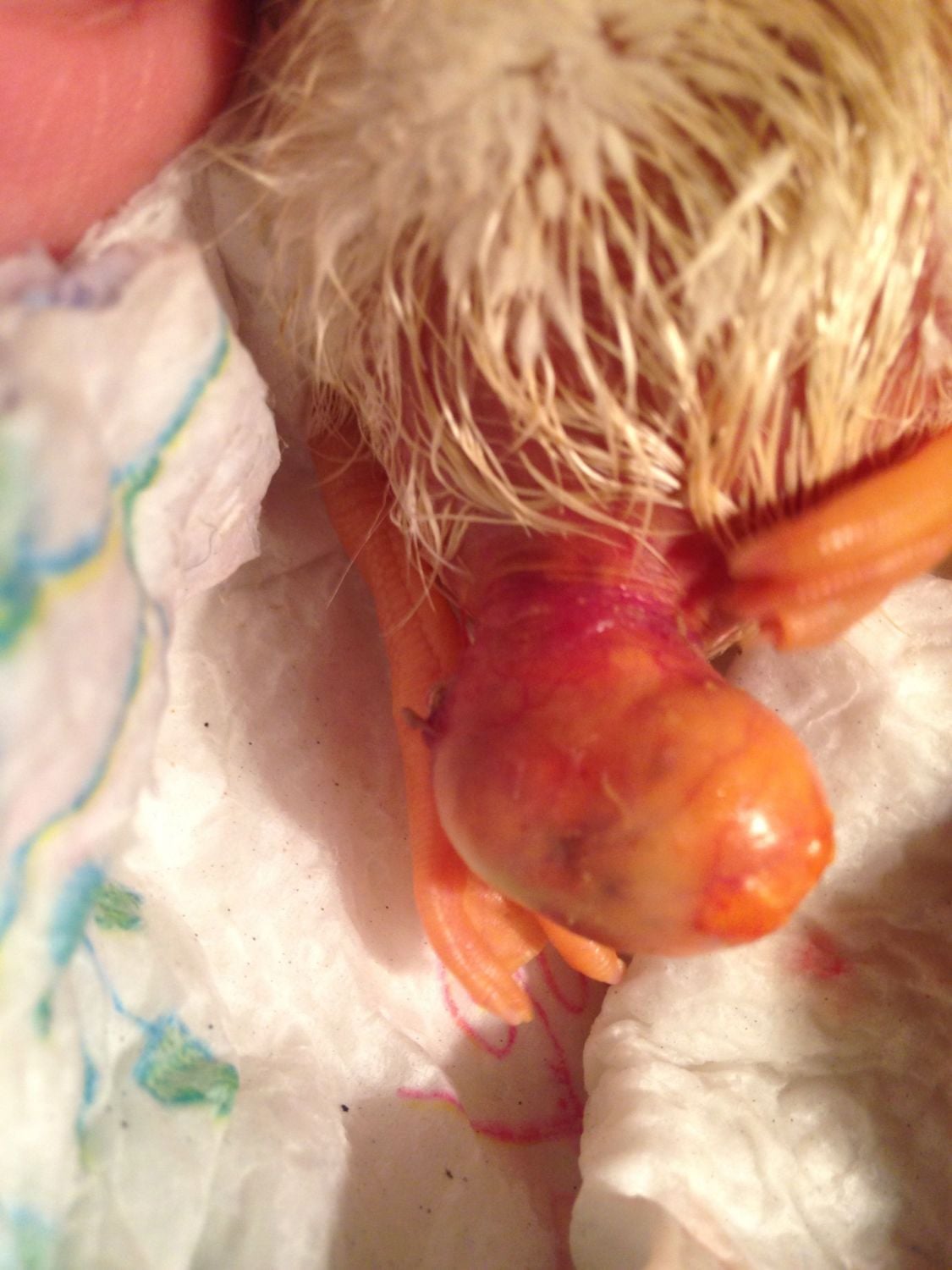 From this pic, she still has a chance of absorbing,  her belly button is wide enough that is can still go up inside.  But the question is why she's not doing it..