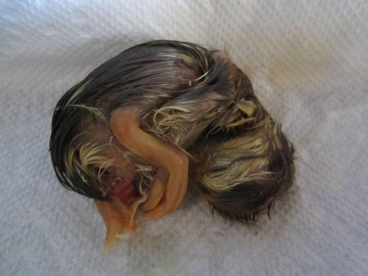 This one wasn't quite right and couldn't stand until yesterday, but seems to be doing a little better today. Still shows no interest in drinking and eating, so I'm tubing fluids. Will start tubing baby bird food today. Four days old and I can see that it is dehydrated and will try to get a picture that shows what I can see.