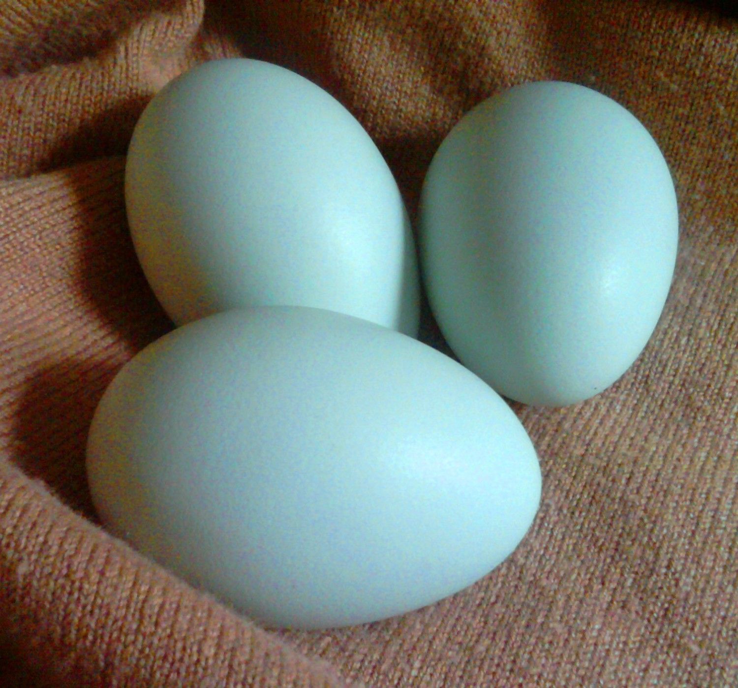 Here's a shot of the Daddy's sisters' eggs. They are a really nice blue so the chicks should make nice blue green eggs!