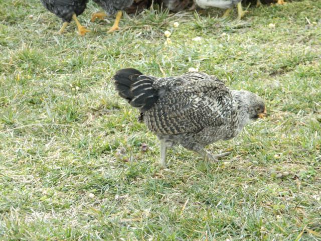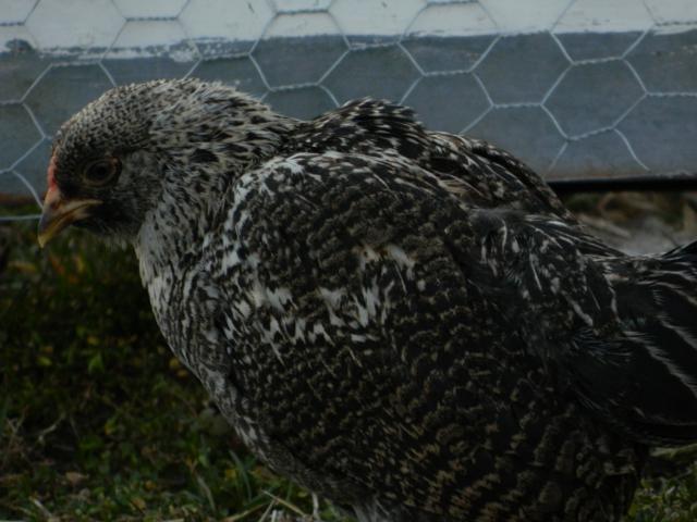 Only a week or two in the picture. Is now four or five. Getting some very orange rusty looking feathers on the breast. Only one out of four chicks that has a beard
