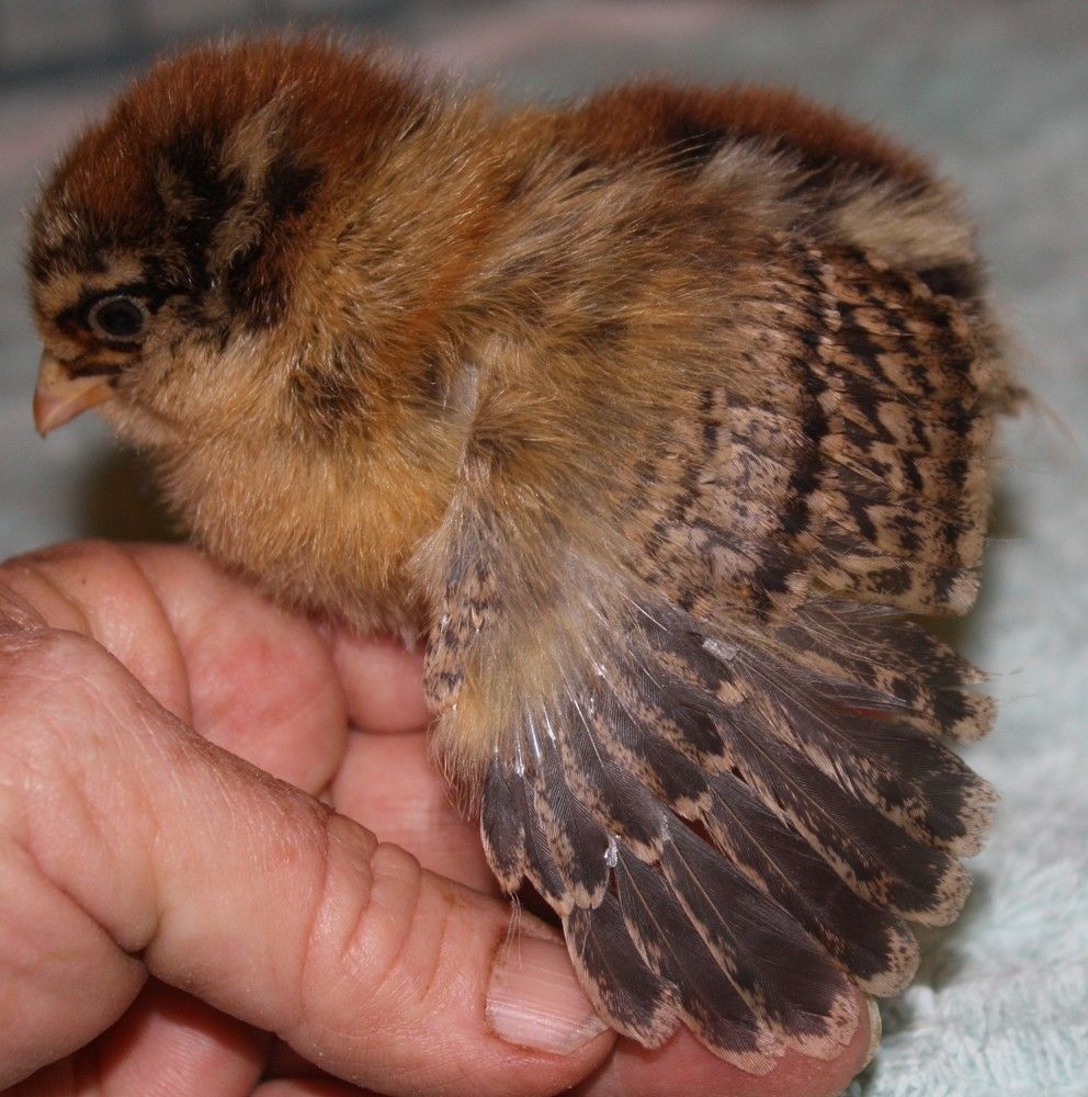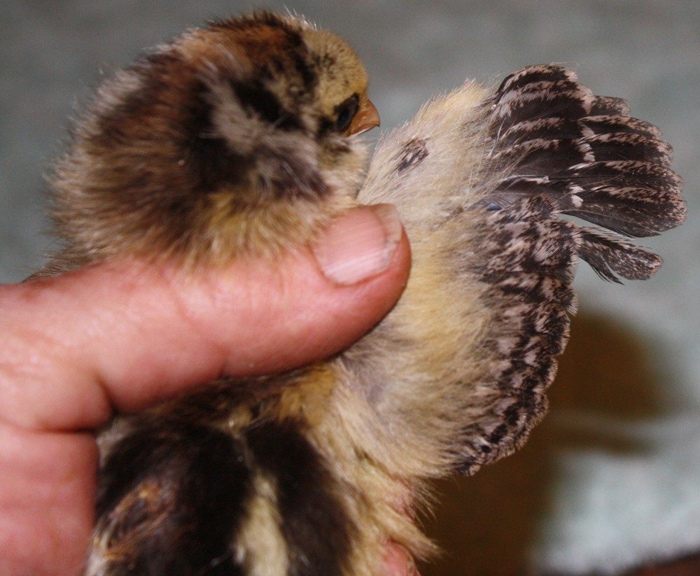 All right I have 36 EE & EE crossed to Welsummer for OE chicks. Watching how fast their wings are growing and so many of them also sprouting tail feathers I think I have almost all boys! I am hoping that is not the case, but... These hatched April 7 and all of them are from my red EE boy Pretty sure this one is a boy as well as all it's siblings; they look much alike; thick legs, tails & wings, Mamma was half black australorp and half EE Their mamma was a Welsummer pullet This ones wings are not growing so fast as most of the others, from a black & white EE hen her wing spread then some have wings that look like these This one from a Welsummer/Leghorn cross hen and my red EE boy Just trying to figure this out; they are sooo tiny at hatch I can't vent sex, I"ve tried. Scared I will hurt them. I have more hatching now that I want to sell but so many people only want sexed pullets....