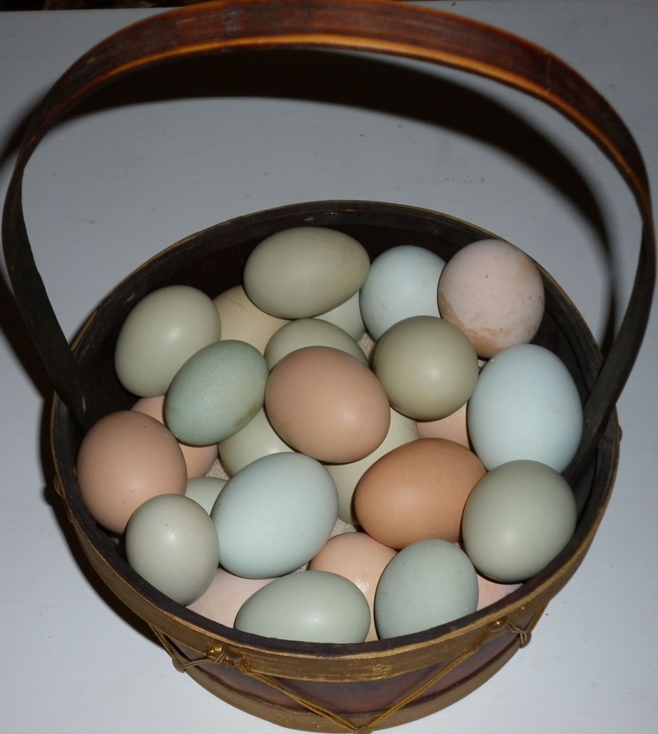 my December chicks have grown up and are laying beautiful eggs in a variety of blues, greens, and creams... and the bantam Cochin EE I was so lucky to get from a fellow byc'er hatched one chick out of three eggs in mid winter, a BR x EE, turns out to be a little cockerel, but he's really cute!