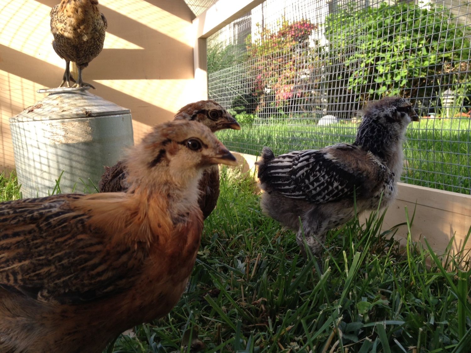 These pullets are all supposed to be EEs. They are all 4 weeks old now. The one on the far right has me puzzled, though, because although she is the same age and size as the others, she is about 2 weeks behind her sisters in feathering out. Is she really an EE? Almost looks to me like a Columbian Wyandotte or something. Has anyone else had a chick like this and what does it look like grown up?