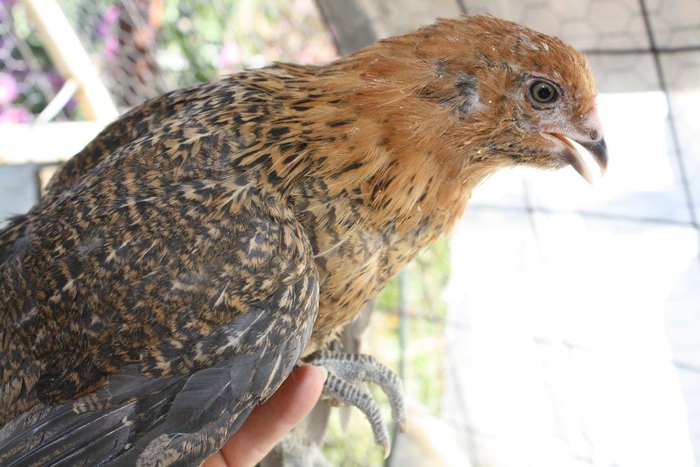 Hika Ma at 13 days old! Pretty sure he's a boy at this point. The three rows of peas showed up on his comb and his feet are pretty big.