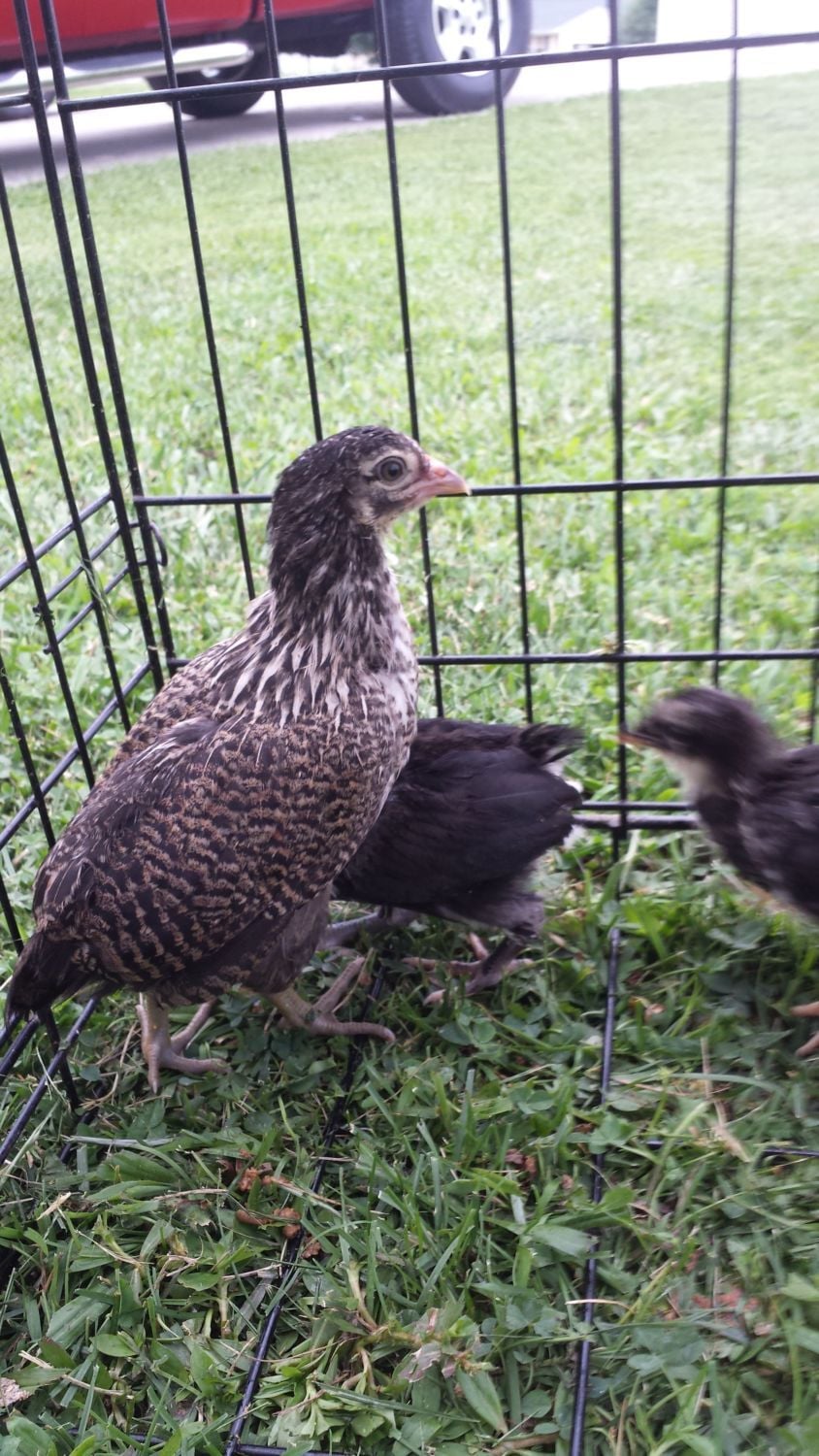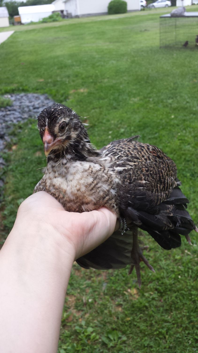 LOL... I have blue Polish and Blue LF Cochin. And a lone Porcelain Milli Fleur Dutch Bantam roo and a mix Jersey Giant pullet. I have all colors of chickens, but the blue is catching my eye lately. My favorite he was a Silver EE that my sons dog killed. I'm going to hang on to all of these and see I I get a silver too. I'm making a early determination with my guessing system that all the chicks the hen hatched, but the yellow chipmunk striped are pullets. ...we will see.