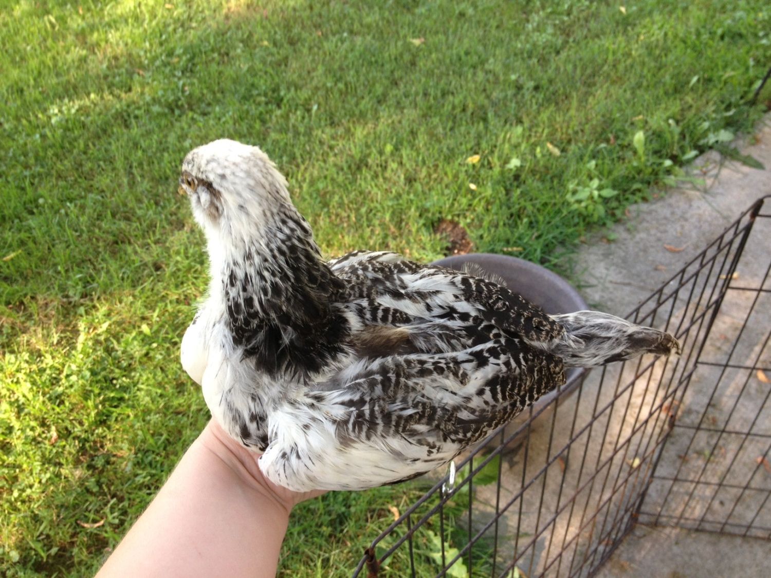 I kept 2 EEs out of my Easter day hatch and they are pullets. These pics are old but they are PS and Pet's babies so their names are PB (Pet's Baby) and PBS (Pet's Baby's Sister)