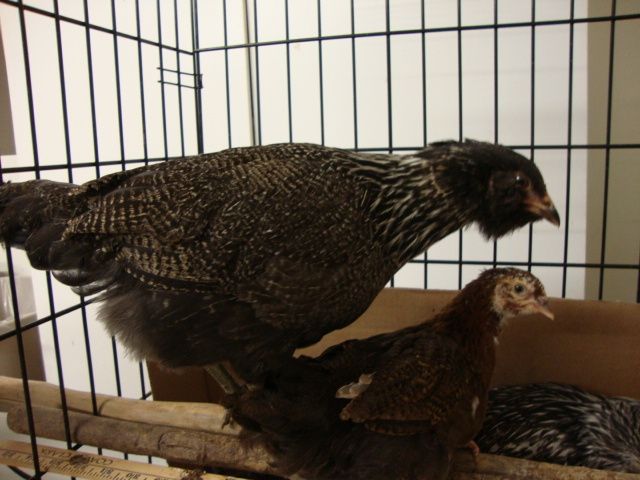 one Silkie (and 4 Bantam Marans). I'm hoping the Silkie is a pullet, and that she'll be broody someday.