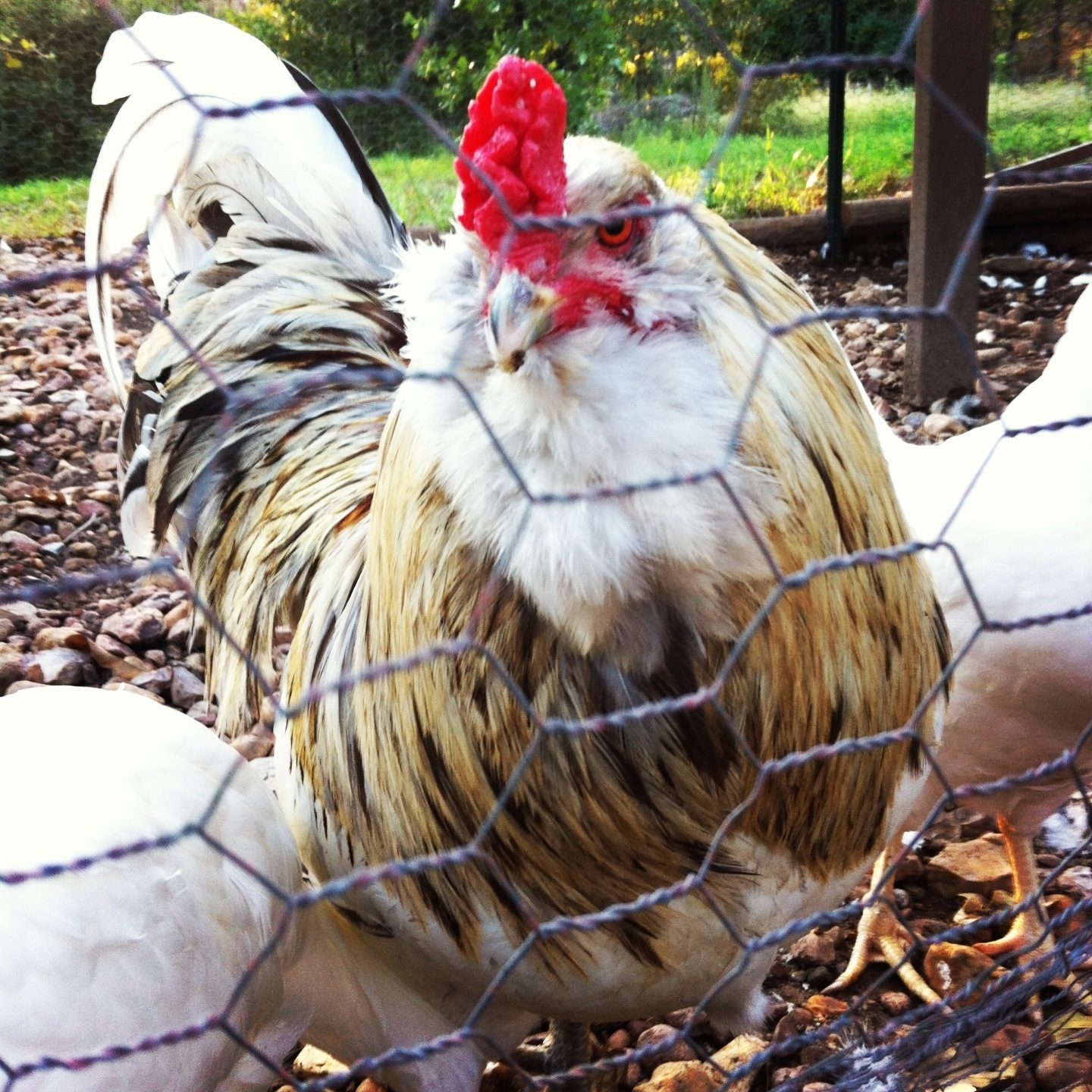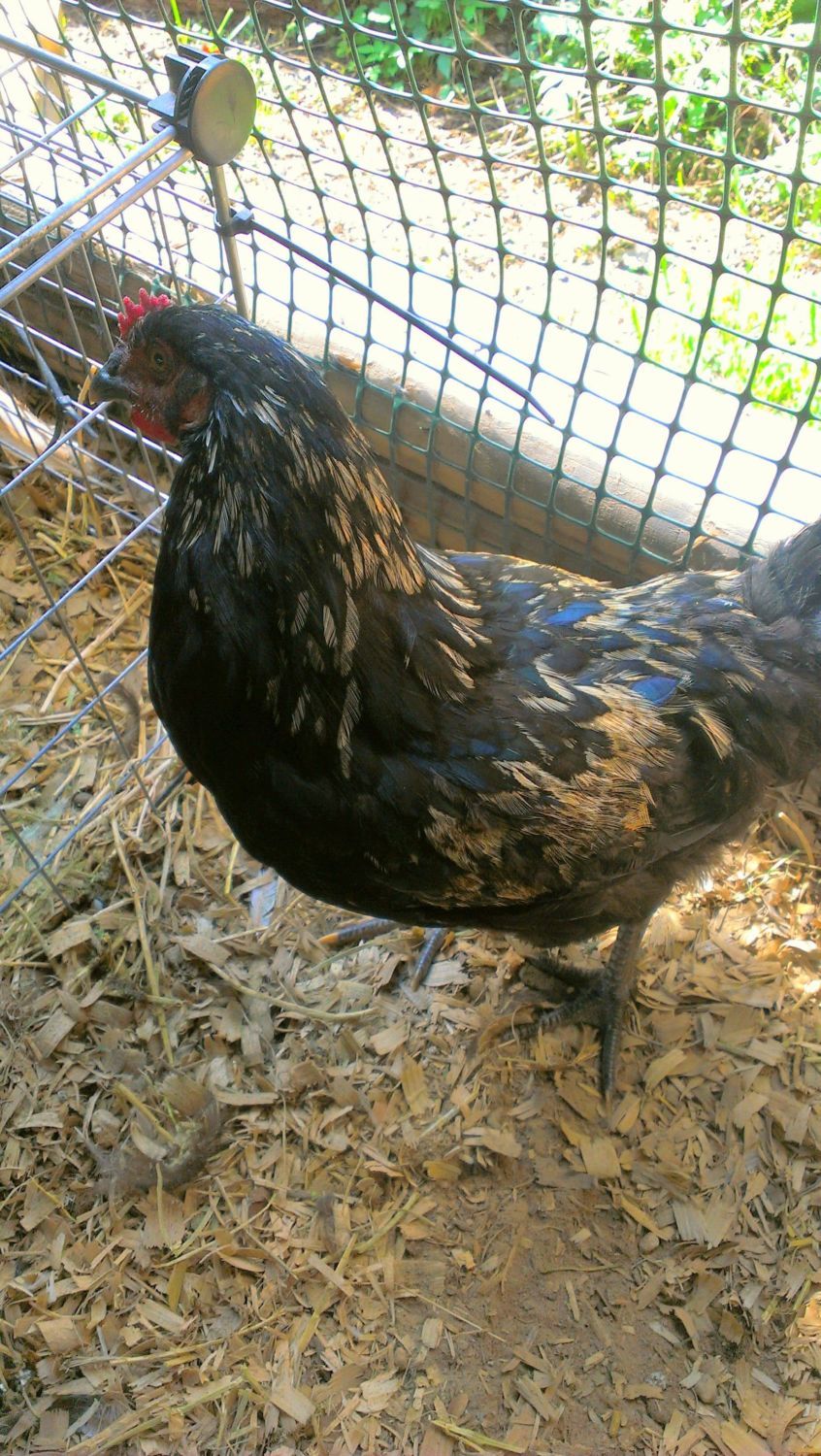 His father is a wheaten ameraucana. I've noticed how much he looks like his father did at this age. He got that tail from his EE mom. I think this boy will be pretty good sized. He's at 3.5 pounds already. I'm probably going to keep him with my layer flock and use him for protection and making more EEs. He's got a very good temperament on him.
