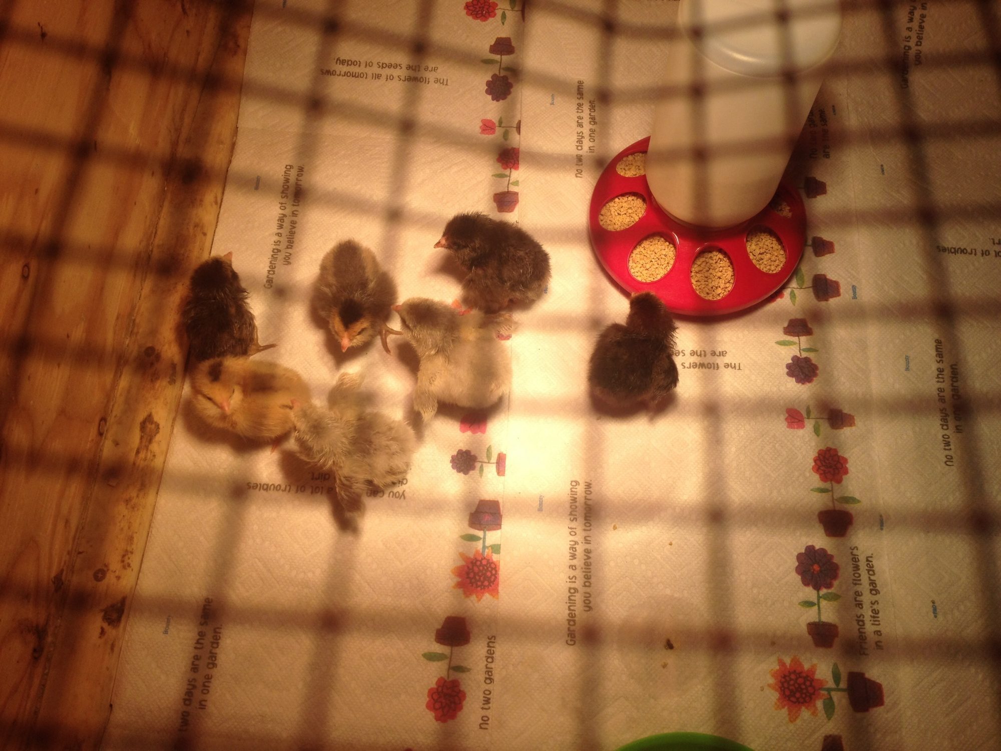 Darkness or lightness is something you can't even stab at with these guys though. Black chicks grow up light, light chicks grow up dark... No way to tell. Even the dark wing feathers aren't a giveaway - they flippin' change them as they get older!