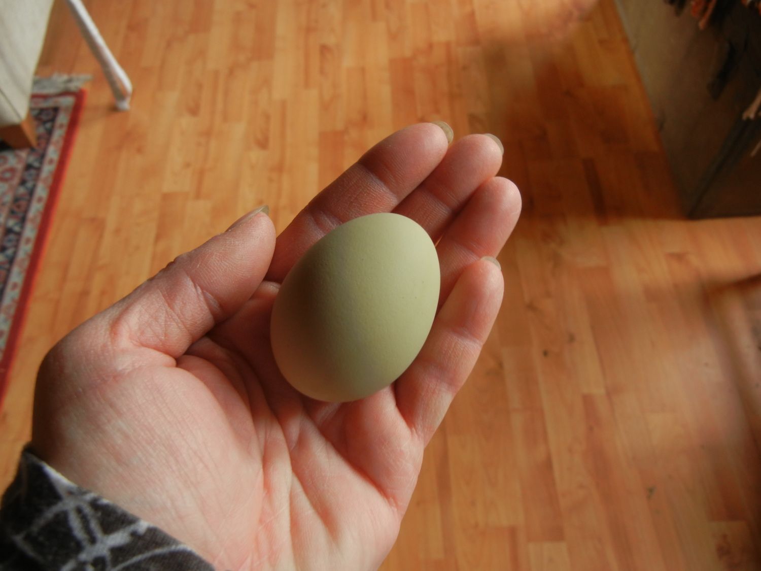 And look what one of them finally left for me! A nice pretty olive colored egg.