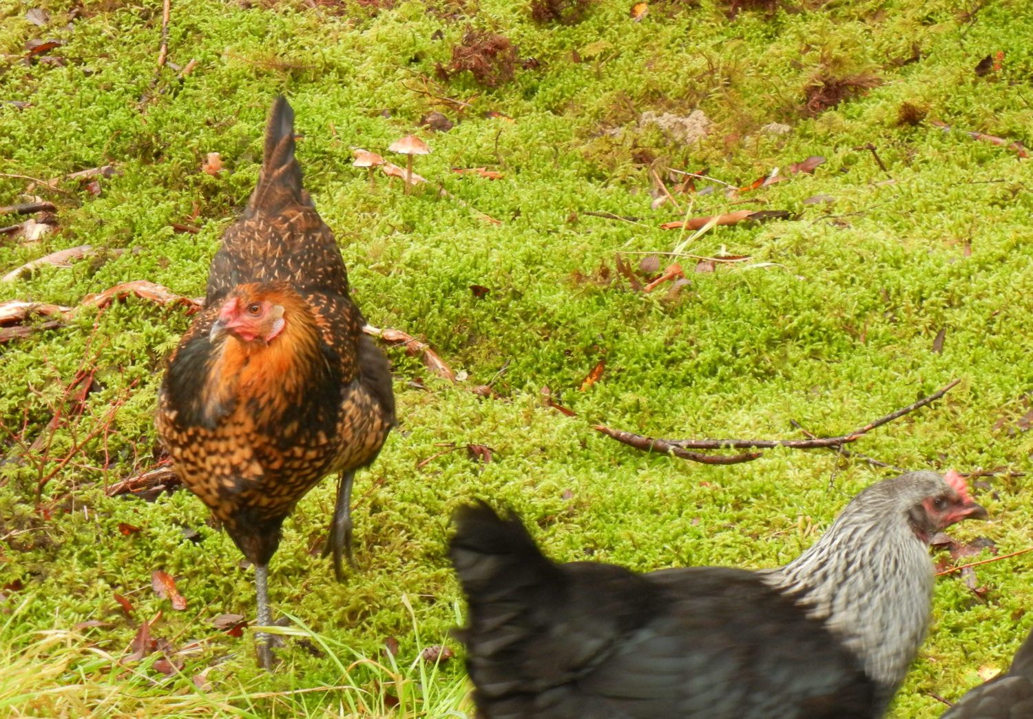I think it was the girl in the back. She's been squatting for me the last few days and she has the most developed/reddest wattles of the bunch.