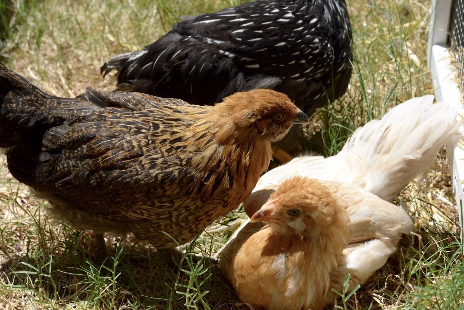 The wyandotte is in the back of the bottom picture; the bird with the black and white lacing.