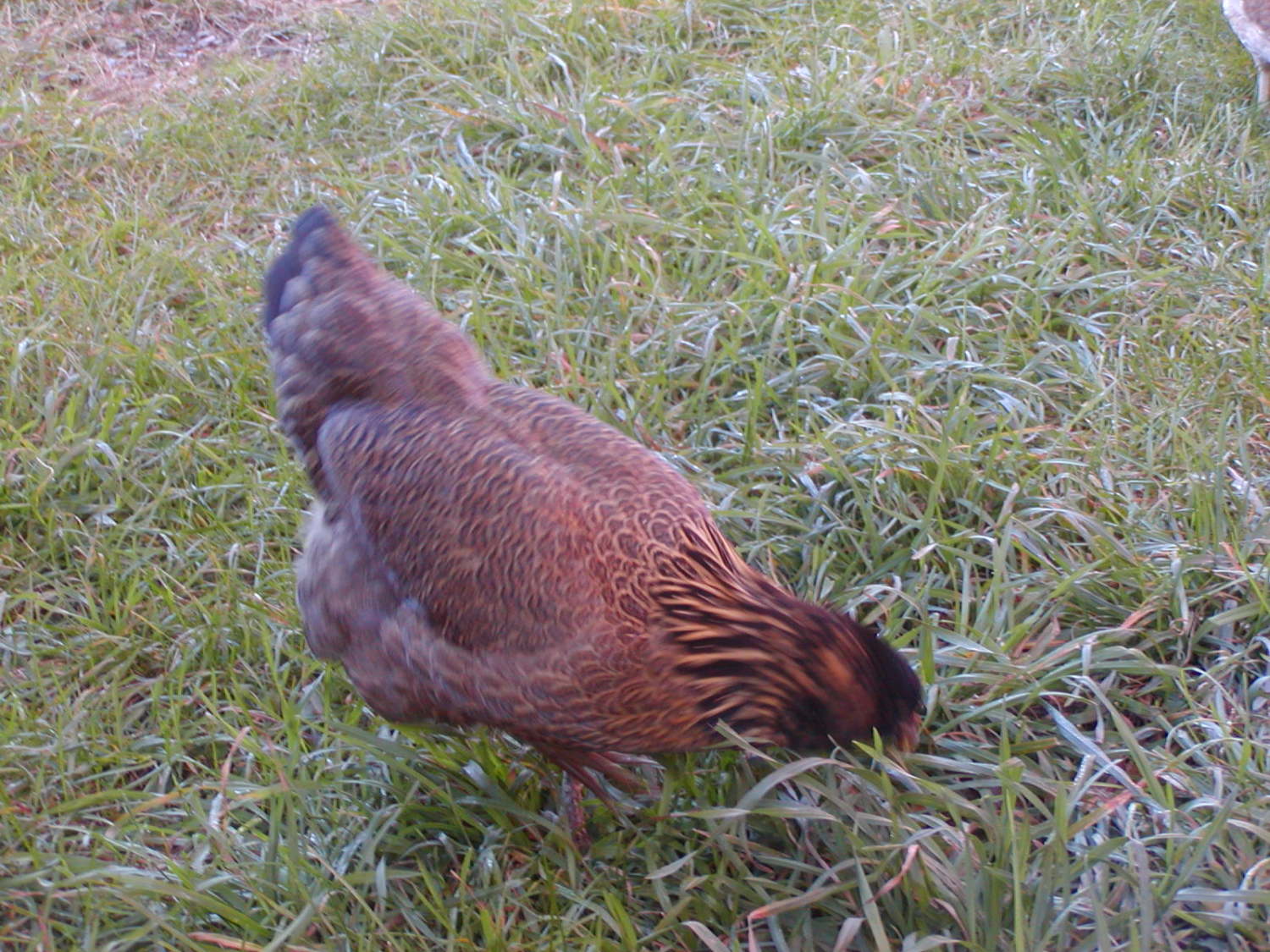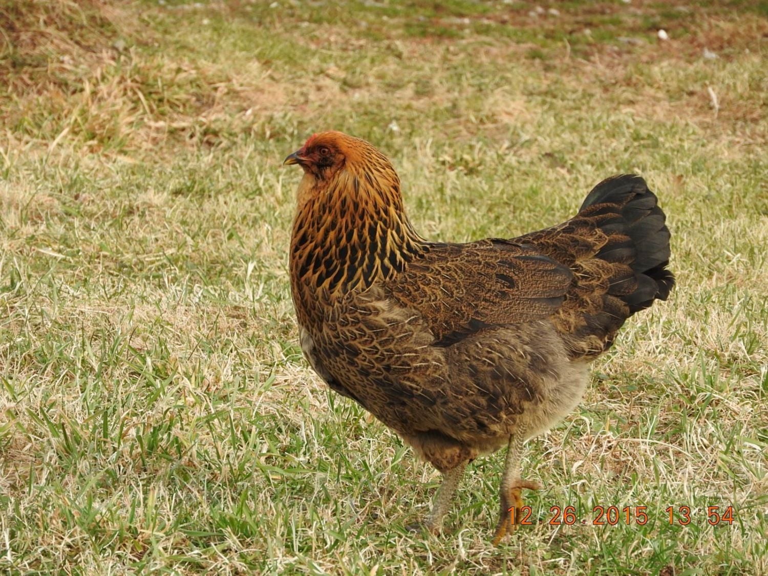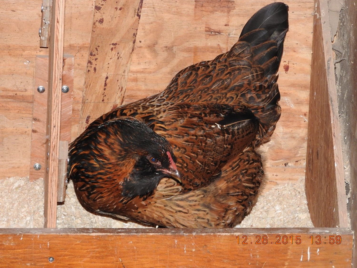 Your bird is a beauty. No other color is noted to the yellow peeper at this time. I'm curious to see how she turns out. The spotted one was just to interesting of a pattern to let go. I cant wait for her to feather out. Not even sure what my chipmunk ones will look like. Super excited either way.I've not seen one like yours with the "splashed chocolate" spots before. That one will be really interesting to watch. My guess is it will be white based with "I have NO idea" brown patterning. The yellow one will likely be white based as well. Is there any hint of non yellow color on her body feathers? My last batch of chicks included a pure yellow EE with a faint smudge of apricot on her head which was about the only thing that differentiated her from the White Rock chicks. She turned out like this: