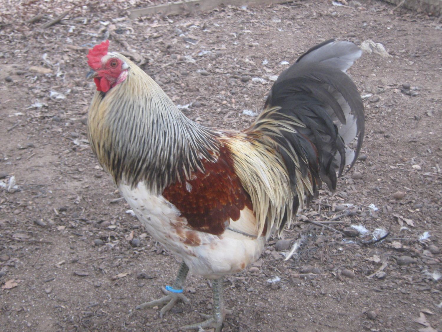 the cockerel in the pick is one of the offspring the father is a standard grey/ black barred rock roo. the hen (mother) looks like the brown/black one in the last pick from pinkwindsong in the last post with pics