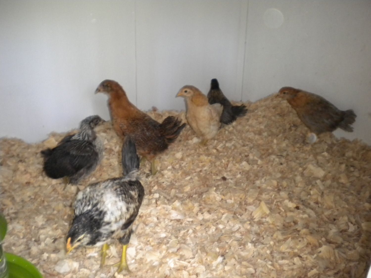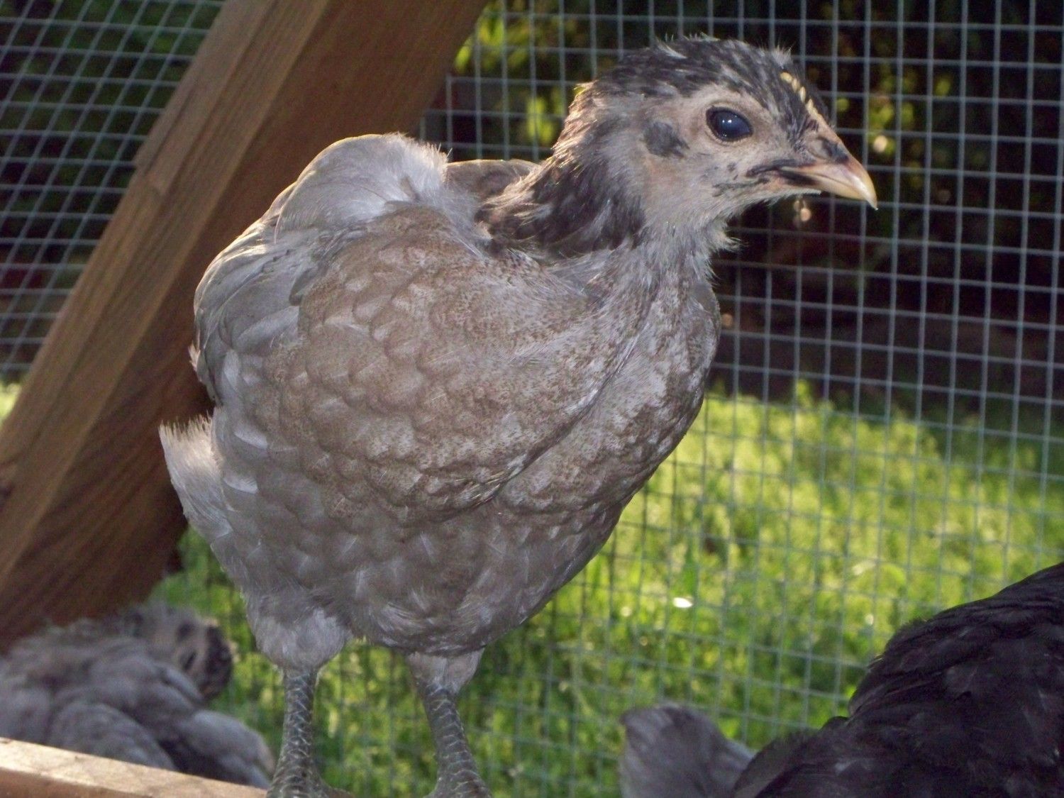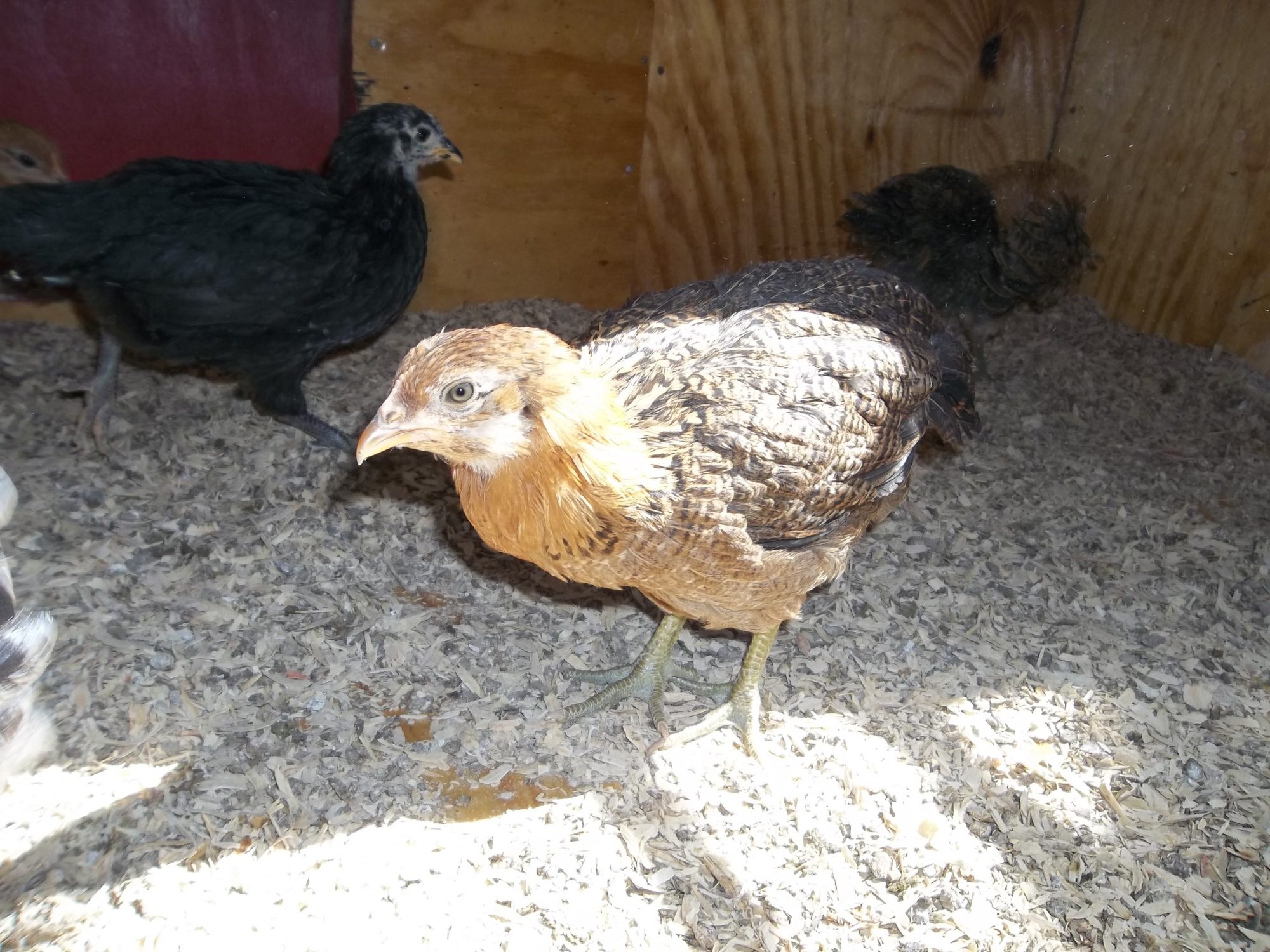 I hatched out a few adorable EE's this Easter, one of them a very neat caramel orange color with white belly and neck and some black splotches on the back. Most of the others were blue, black, or brown. No mottled ones this time.