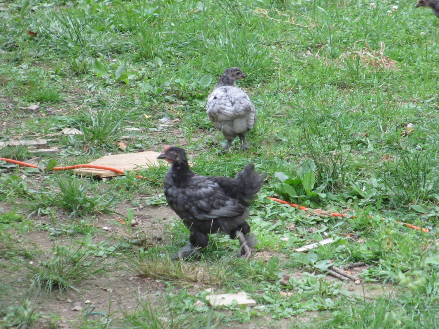 I got a couple of surprise hatches. I have a very mixed genetics flock but not sure if I have any actually EE. None that really look like it. The closest ones I have are a few Faverolle hens and one Ameraucana roo. Here are my new babies: