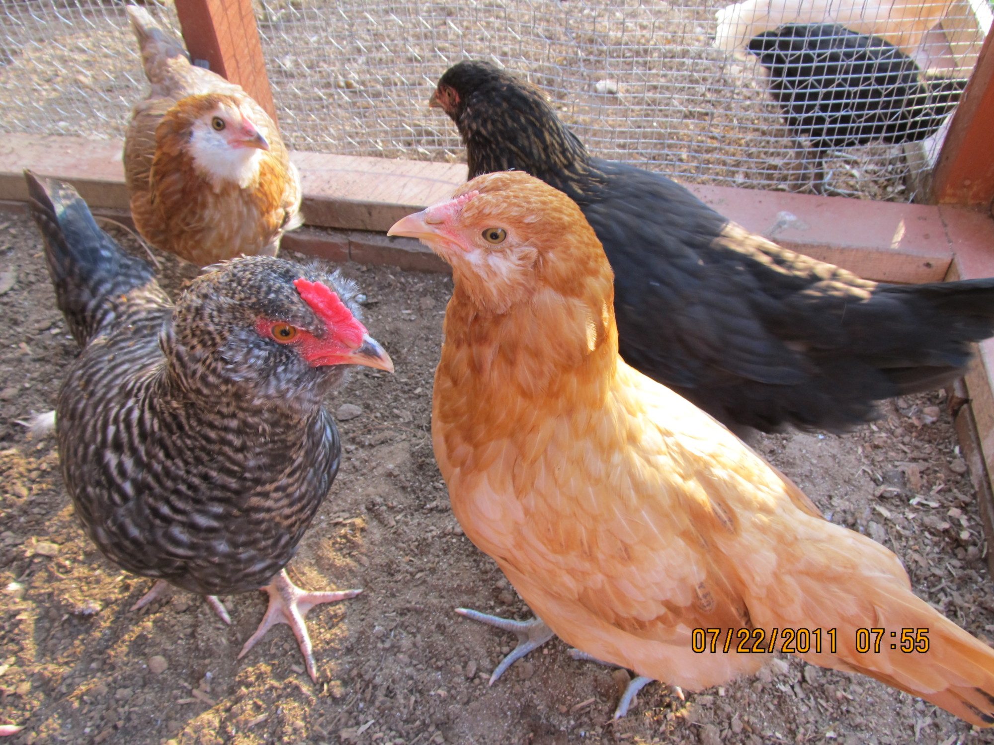 Thank you very much. Eliza and Olivia are 23 weeks old and Veronica and Roberta are 22 weeks old.Congratulations!!!!!!!!!!How excited you must be to have 4 "first eggs" in one day!! Thank you for posting a picture of the eggs AND the chickens. Eliza looks the most like my 2 EE's who are 16 weeks old. Their combs are nearly as red and almost the same size as Eliza-which gives me hope that mine aren't far away from laying themselves.![]()