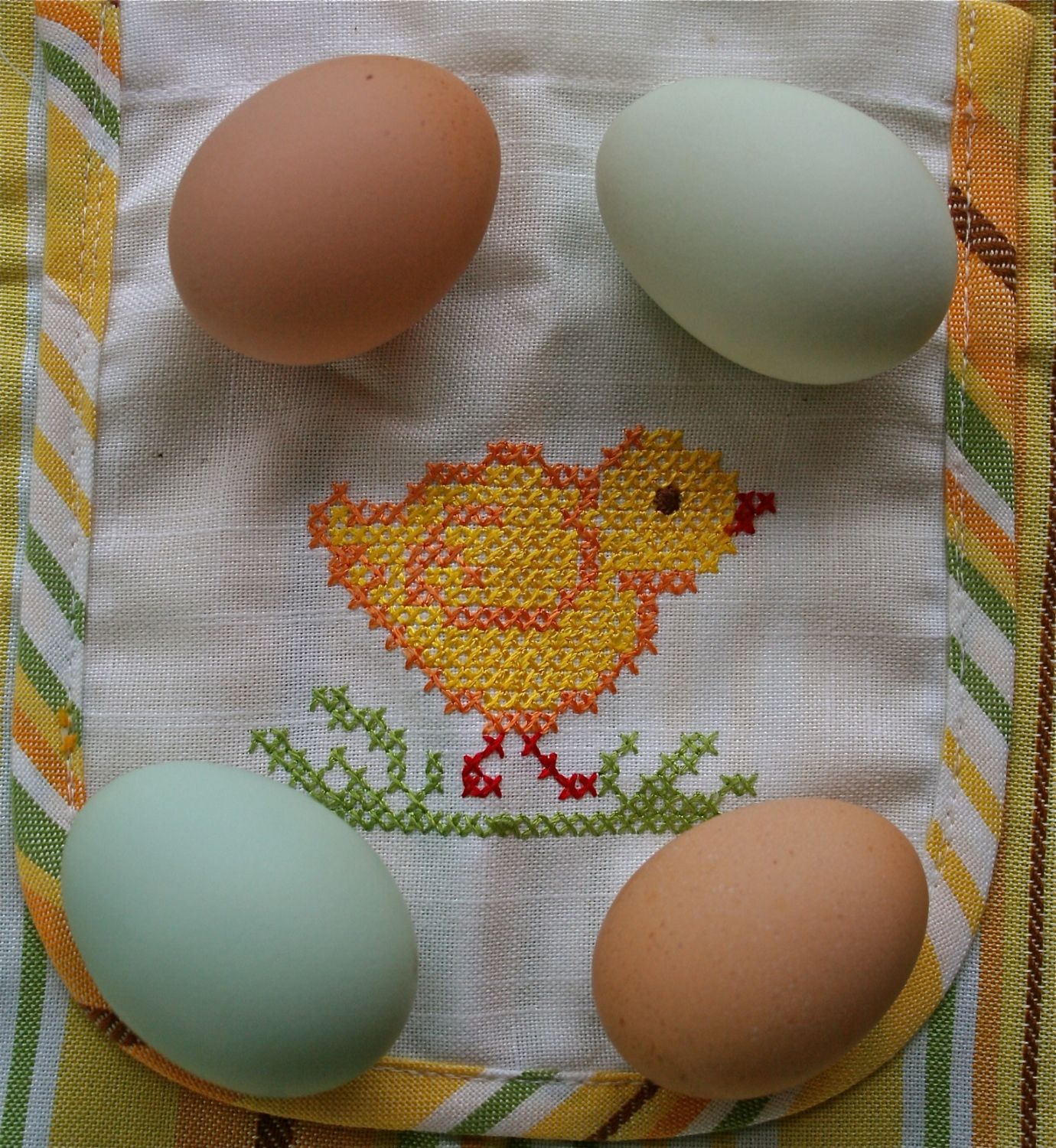 Beautiful eggs and chickens............And I love the "curtains" that Veronica is walking through-how cute! Is that for nest-box privacy-LOL?