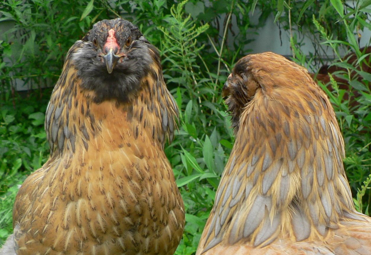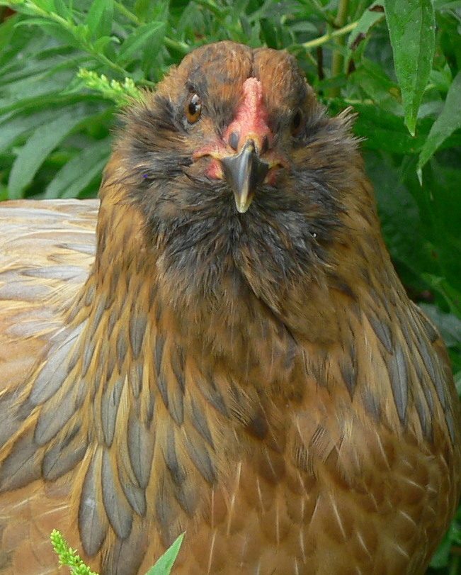 You have a pretty girl there! I'd say she's definitely got some Andalusian in her, if she isn't full blood. This I don't know, but is it possible that the earlobes just turn white with maturity? How old is this chicken? If she's still young, maybe they will turn white later. If they stay red, she could be an EE. They don't have to have beards and muffs to fall into the EE category.MoonChild~ I have a blue hen that looks very much like your blue hen with the brown face. B/c of her ear lobe coloring I don't think she's an Andaleusian {sp}. She has a reddish earlobe. I'm wondering now if she too could be an EE,if thats what your blue one is. I'm new to this thread If anyone can help me determine her I'd appreciate it. Thanks
