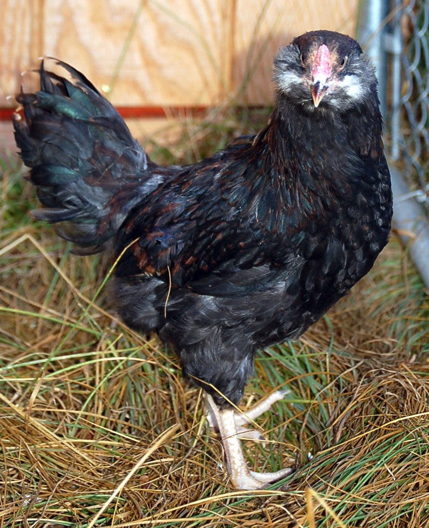 When I first got my original six chicks back in May, one of them, an Austra white, turned out to be more aggressive than the rest - chest-bumping and clearly the leader from the get-go. By the time he was 9 or 10 weeks old it was obvious she was a he, and we rehomed him.(Not only was he starting to crow, he had a clearly developed red comb already.) I got two new birds, a bit younger than my others - both EE's (my others are all Wyandottes.) One of them, the youngest of all, was not intimidated by the older birds - she wouldn't let them put her at the bottom of the pecking order. Now I see her chest-bumping with the others all the time! She's quite skittish and won't let me get close to her - here's the best I have for pictures.