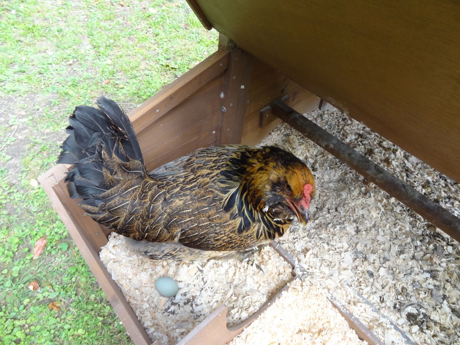Eeeee..... my EE'r Cashew laid her First Green/Blue Egg!!!! I'm not sure if it's Blue or Green.....the inside is more blue than the outside (found out when I dropped it) :0(