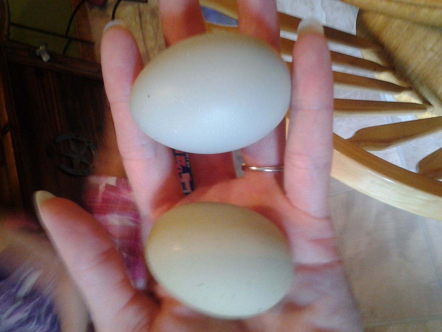 How Eggciting!!!! I didn't know if I'd get anything other than a light Pinkish Tan because her flock sister looks almost just like her and that's what color she's laying. I'm soooo looking forward to Spring I'm gonna have to get some more EE'rs they're Soo Pretty and So Much Fun<3