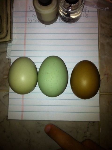 so will the girls carry a barred gene? What do you think would happen with the Blue Barred roo the Lavender girls, will some have the barring? How about the Blue Barred hens under the Lavender Ameraucana roo? This is fun. I love the combo's. My Lavender Ameraucana's are laying some pretty blue eggs and they are under a OE cockerel and a clean legged Marans roo. He's probably going to go to auction, he's really big, I'm just watching that he doesn't hurt them. I want to see if the Marans girls pass the feathered legs gene to her chicks even if the boys are clean.![]()