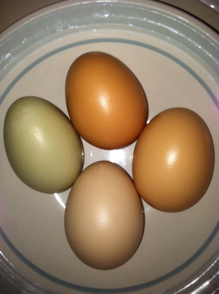 Brown eggs in the pic are from our Columbian Wyandotte and Barred Rock...white are store bought large.