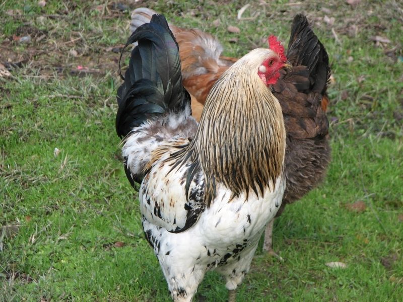 Saying hello to the Blue Laced Red Wyandotte cross beak and retarded rooster - he's in there to prevent him from adding to the gene pool. I will probably have to eat him. He still peeped like a chick when he was 4 months old.. only started crowing last month at almost 8 months old!