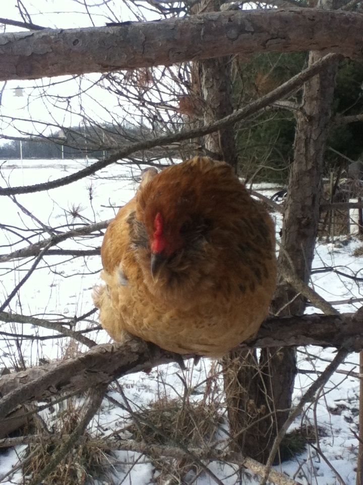 Aw, that's too bad! Cubby usually lets the other hens pull her's out, too. :/My EEs and Faverolles USED to have muffs and beards until the Ancona's AND Favs pecked them all clean.It was cold today. My Easter-eggers used their mighty beards for protection!