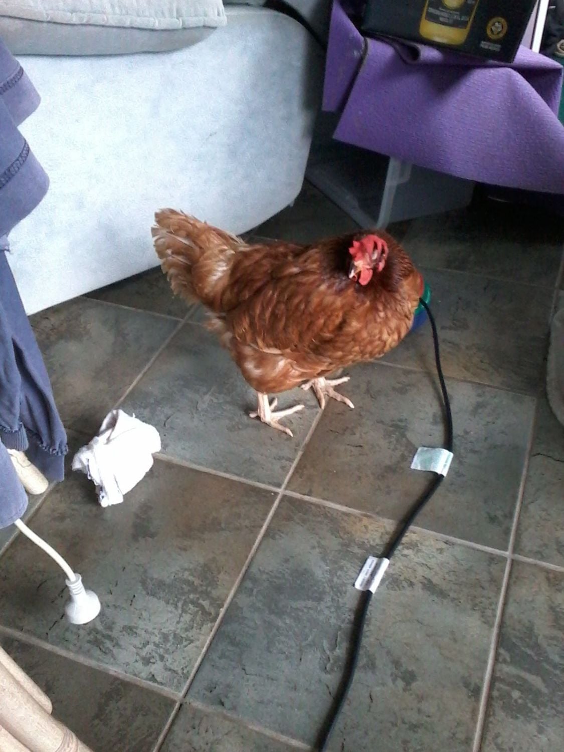 She's eating, drinking and sleeping with the flock. Still not running around like a young'un but not too bad.