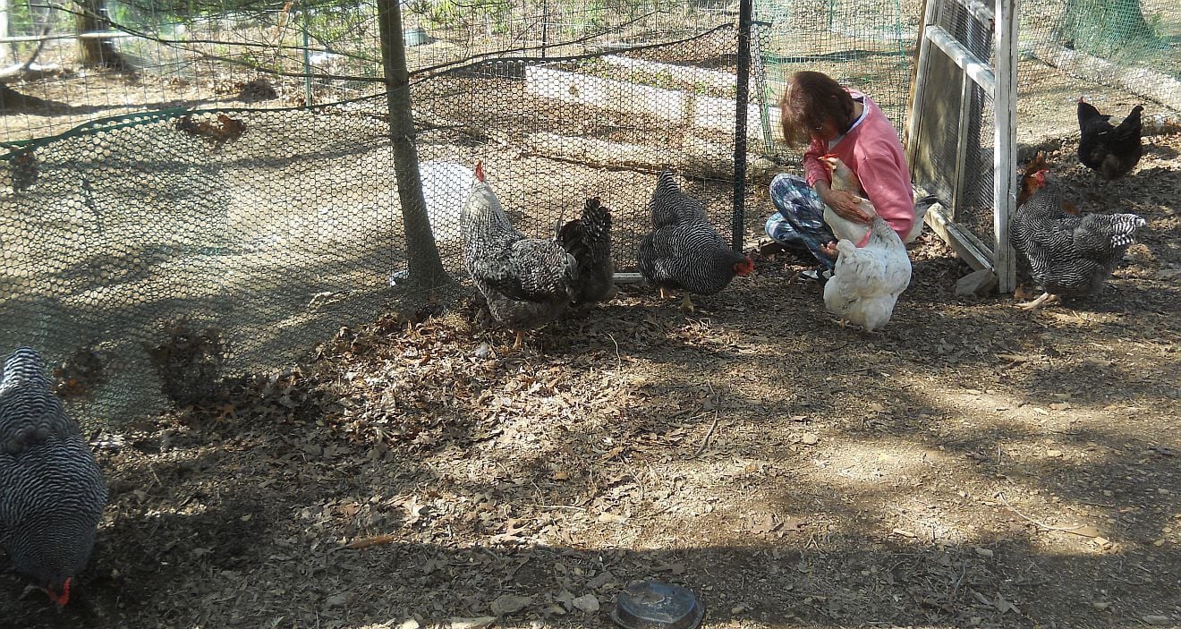And some of the mothers of the chicks with my friend who was visiting this weekend (BR hens only). Click to see them better.