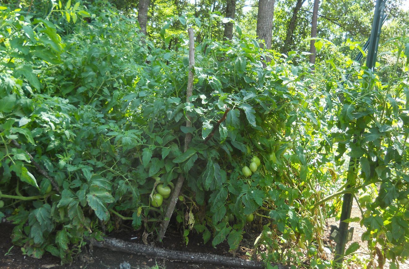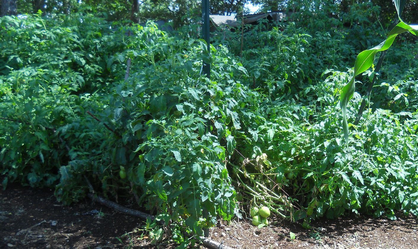 Gardens full of Rio Grande tomatoes not red yet. Falling over, tangled, good grief. Salsa galore! The big tomatoes are turning and I can use those for spaghetti sauce or just stewed tomatoes, but I don't want sweet tomatoes for the salsa.