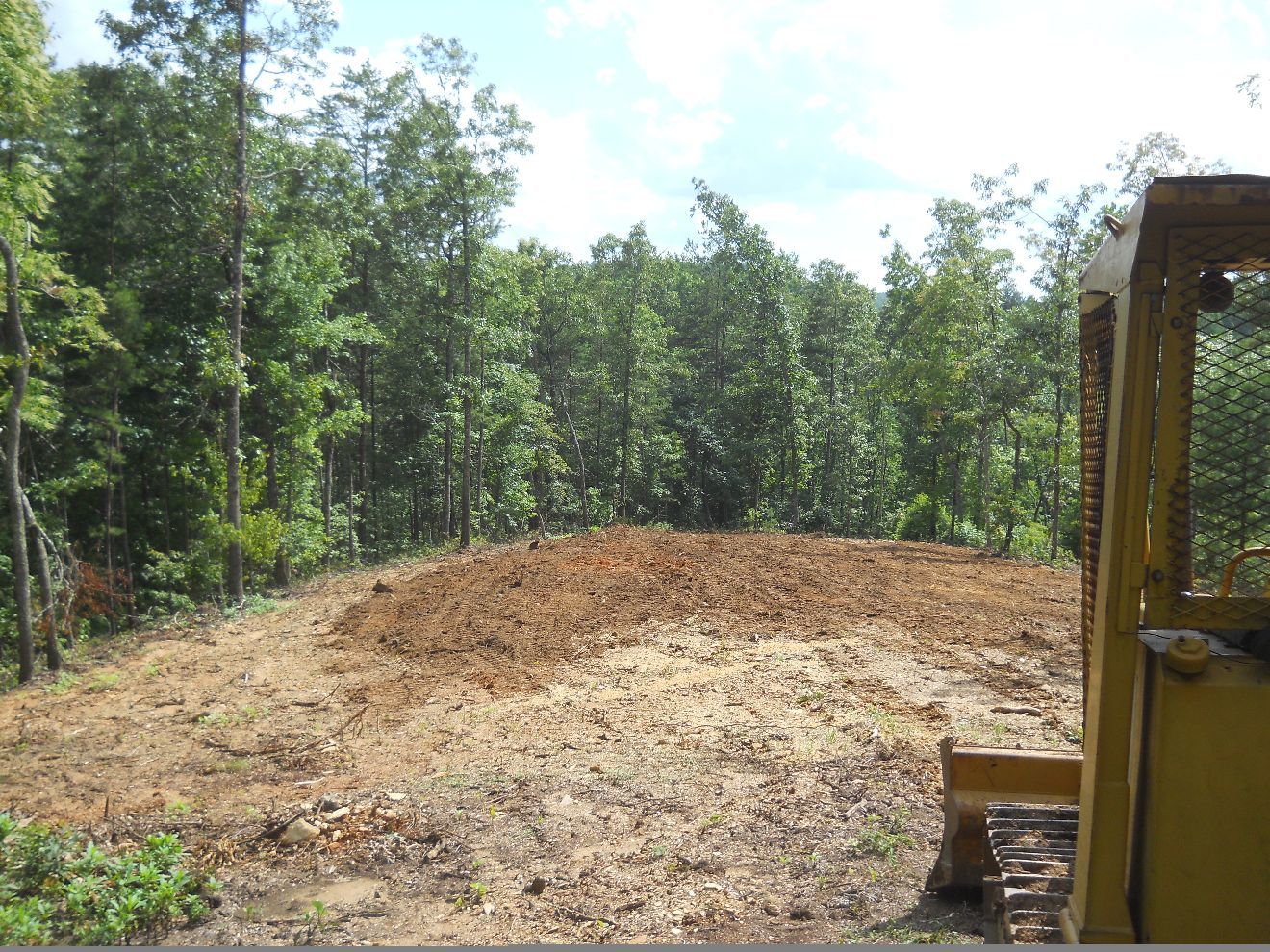 Mark showed up late today, removed some stumps that refused to burn ( he was supposed to bring a blower to force air into the pit, but never did) and put them on the lower lot to burn later when he clears that one. He leveled the huge pile out, removed some cut trees and placed them on our main property for us to cut into firewood then left. No idea when he'll be back, what he'll do prior to seeding, if he'll use another piece of equipment to make the ground more prepped for seed. There are lots of lying branches without limbs, just pieces that are just broken off, perfect kindling, but I suspect he'll just seed over those and eventually, they'll rot further and become part of the soil. Not sure you can tell much but here is part of the future pasture after his few minutes of work today. The first photo shows what I call the meadow, the most clear of all the 1.4 acre lot.