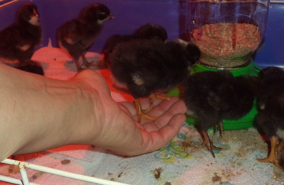 Can chicks be completely rotten at 4 days old? I go clean their brooder a little, play with them a little and they're fine....for awhile. Then, suddenly, the chirp chorus begins. When I walk in, they all shut-up. So, I sneaked up from around the corner and they were all standing up, cheeping loudly, heads in the air. When they saw me, silence. Then, when my hand goes into the brooder, I'm mobbed. Now, that's a proper BR, not in the least flighty.