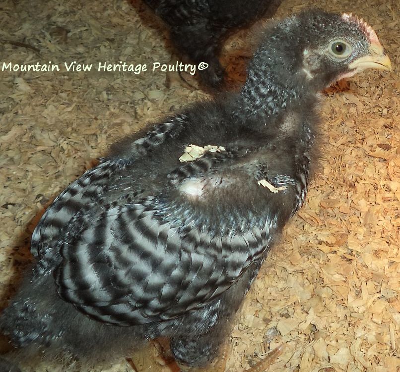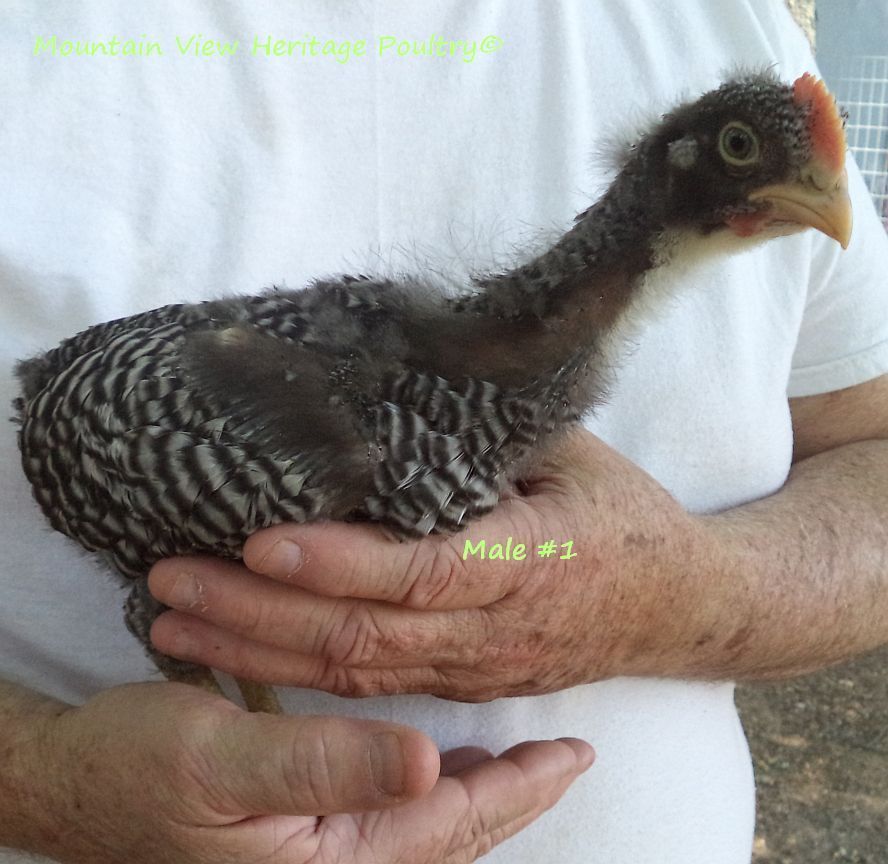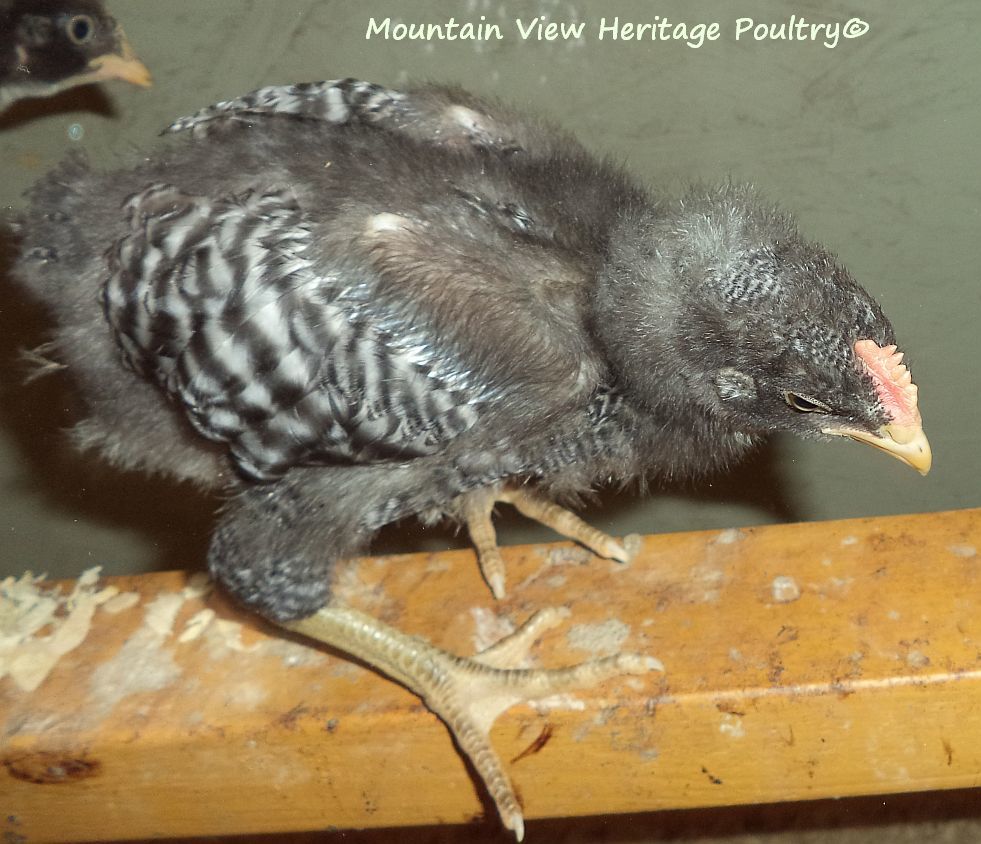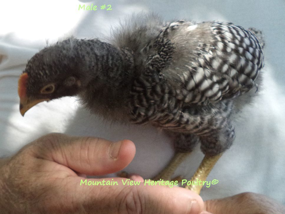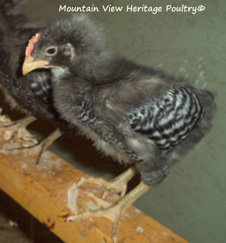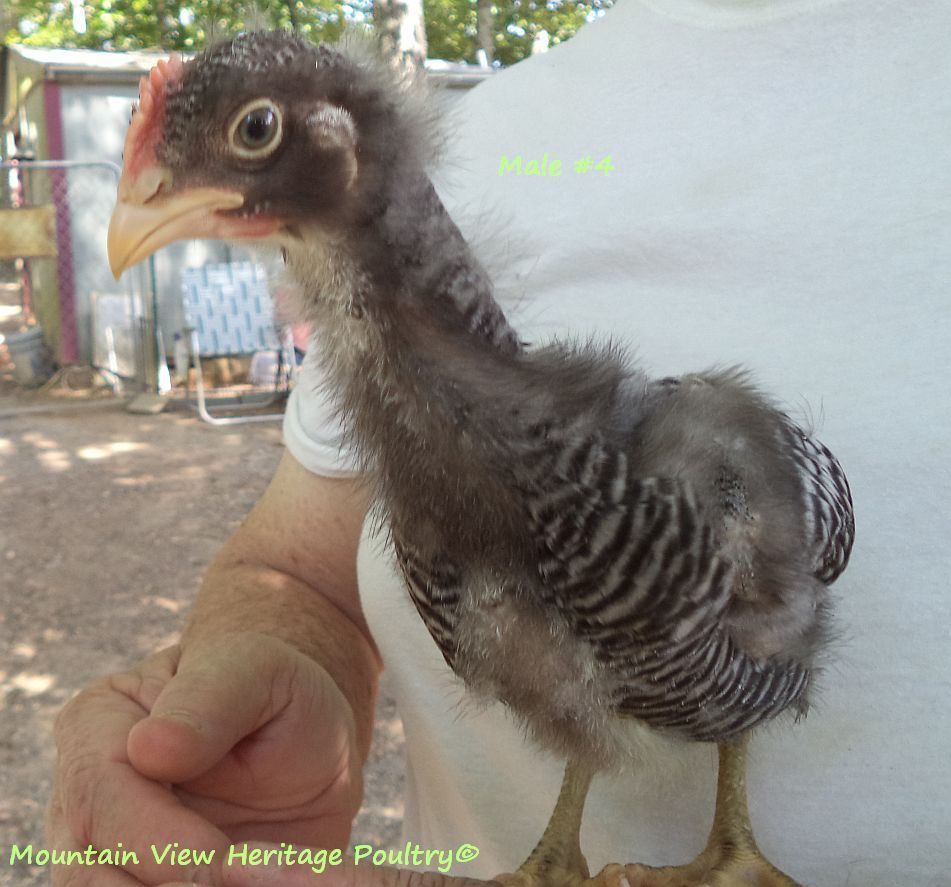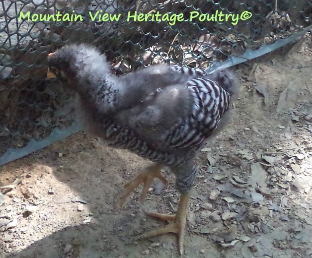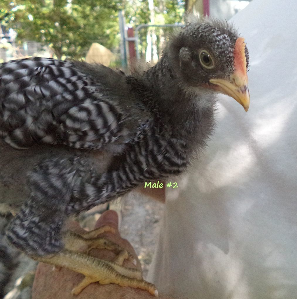 From the males, I want a broad, deep chest, wide leg breadth, regal head with balanced comb with preferably 5 points. I want a long back, proper tail set that is not too high nor droopy. I want good horizontal wing carriage. I want straight barring, may not be super sharp but I want straight, not chevron. And I want superior temperament-I will not watch my back in the pens. And I want him to perform properly in regard to breeding the hens, not abusive to them, and I want a rooster who is alert while on range as a proper rooster should be. Atlas falls short on a couple of these issues-the back and the barring, most obvious. He does, however, perform admirably as a breeding male and an alert protector and is as sweet as you could want with me.
