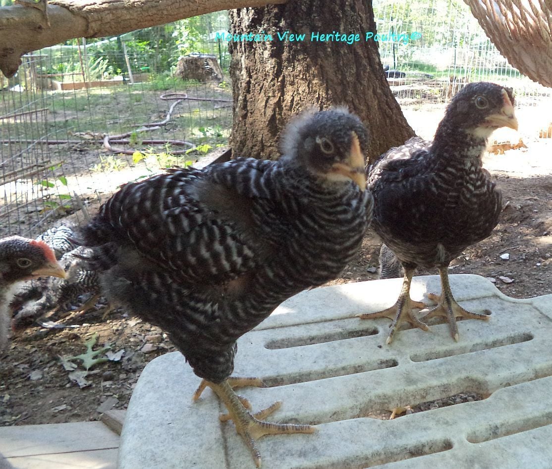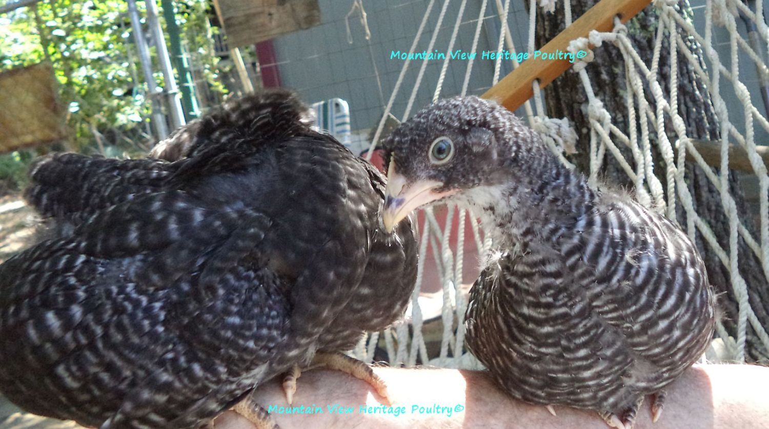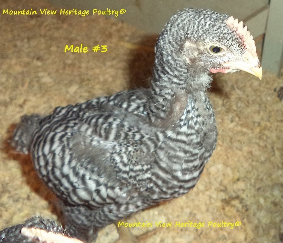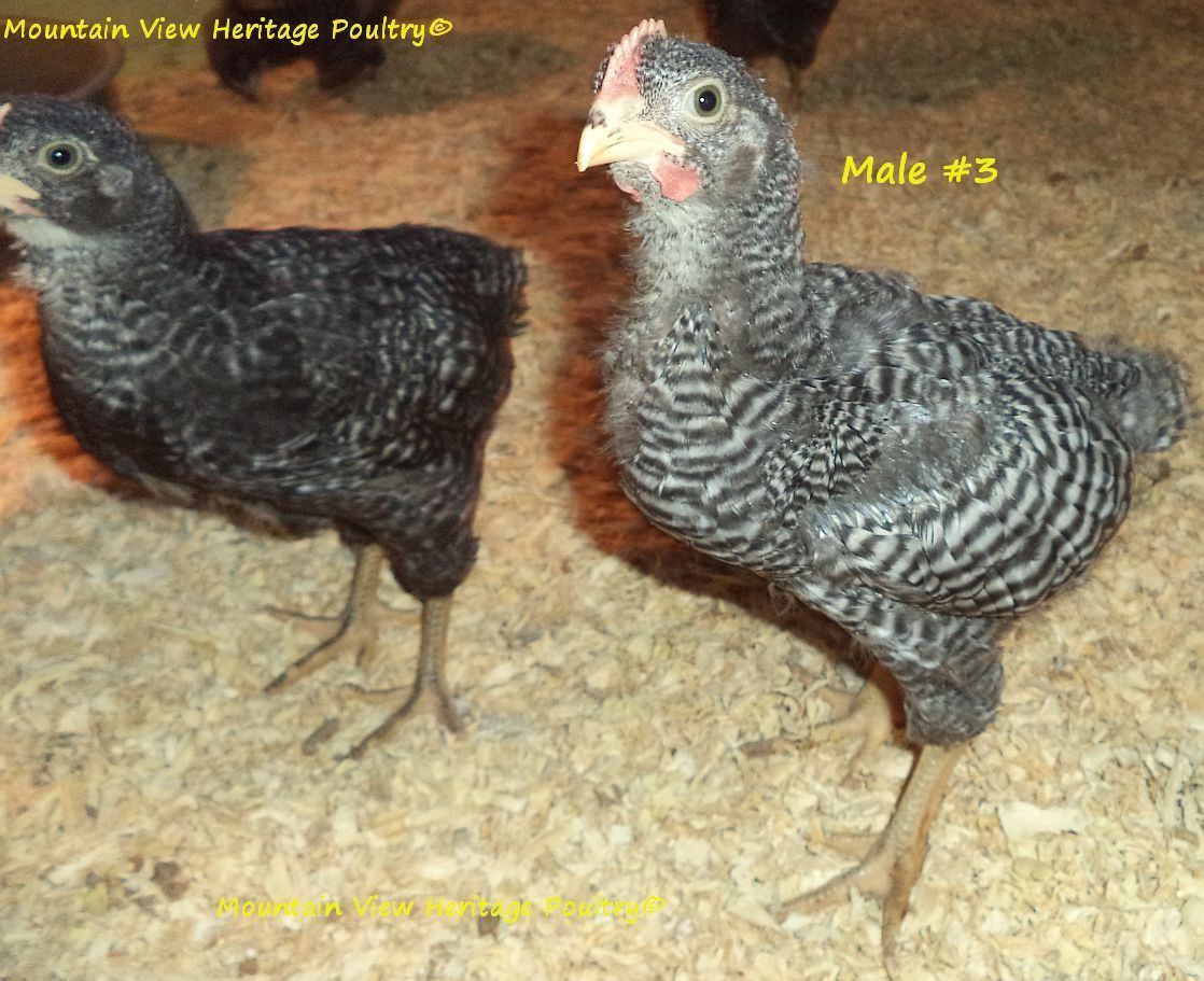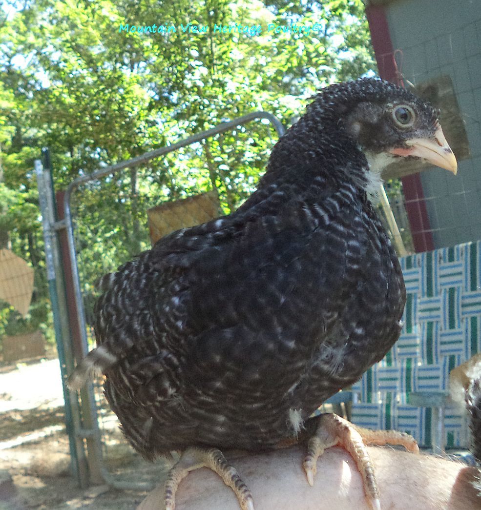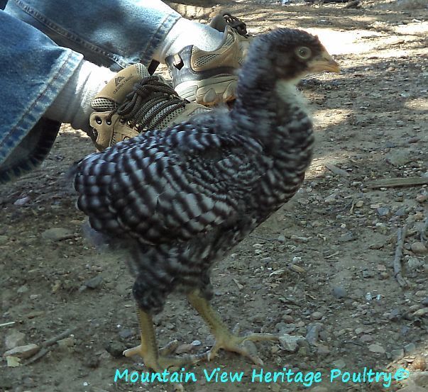 One of my 9 yr old BRs, Amanda, is out of McMurray parents. She produced a daughter with my McMurray BR rooster that I named Zoe, who was a very large hen, very fine barring with the bars so thin. Anyway, her chicks were extremely difficult to sex and she would produce super dark sons. A friend of mine got Zoe before she was a year old and she always had trouble sexing her chicks. It was very weird to see a BR whose parentage was known produce males that looked like black sex links. This little gal also reminded me of Zoe and her progeny. Why that happens, the extra dark ones, I'm not sure, but it obviously does.